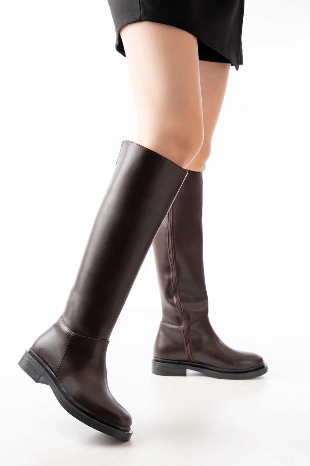 2024-3007 Kahverengi Fermuarlı Günlük Kadın Çizme