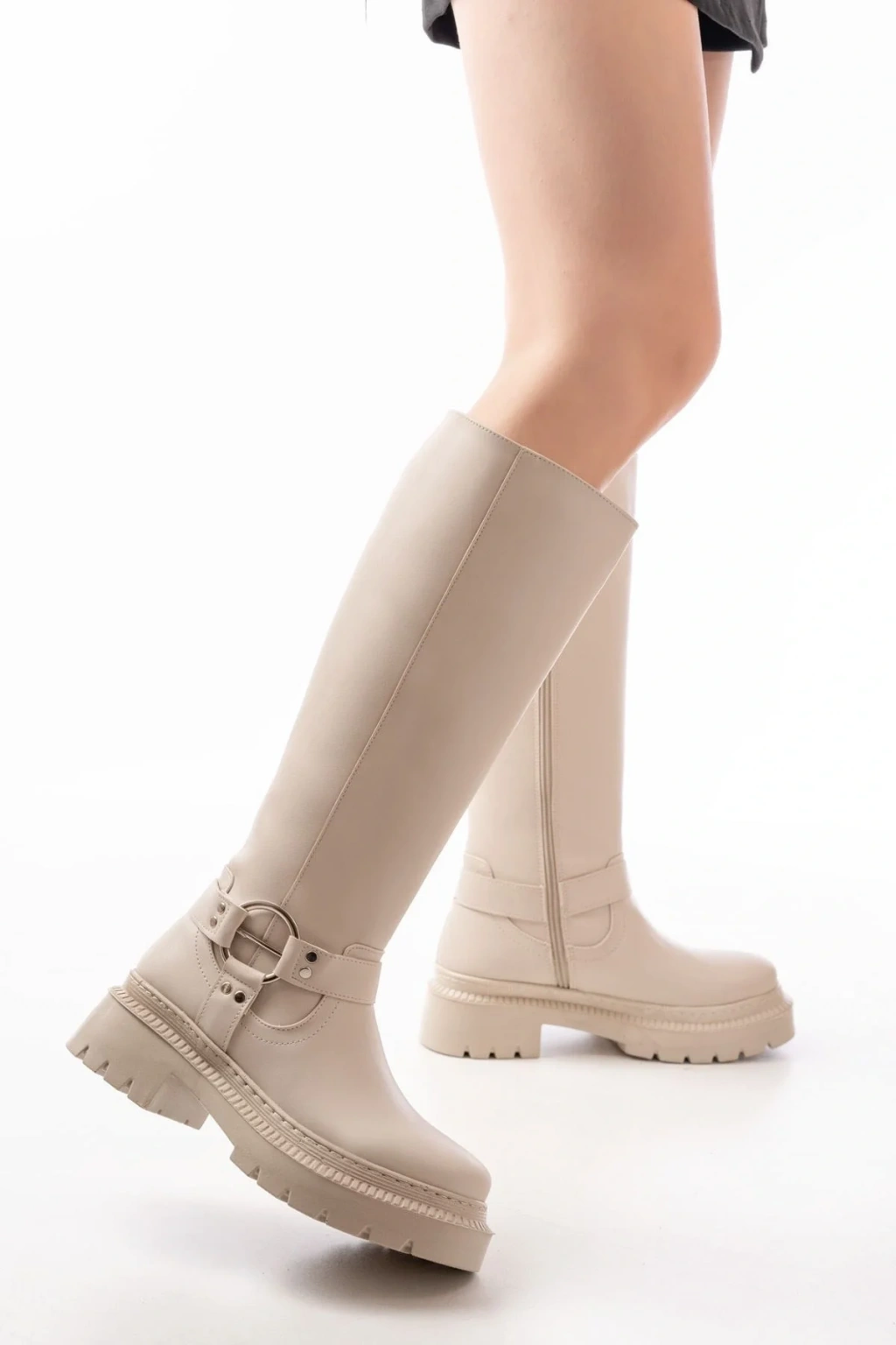236-3021 Bej Fermuarlı Günlük Kadın Çizme