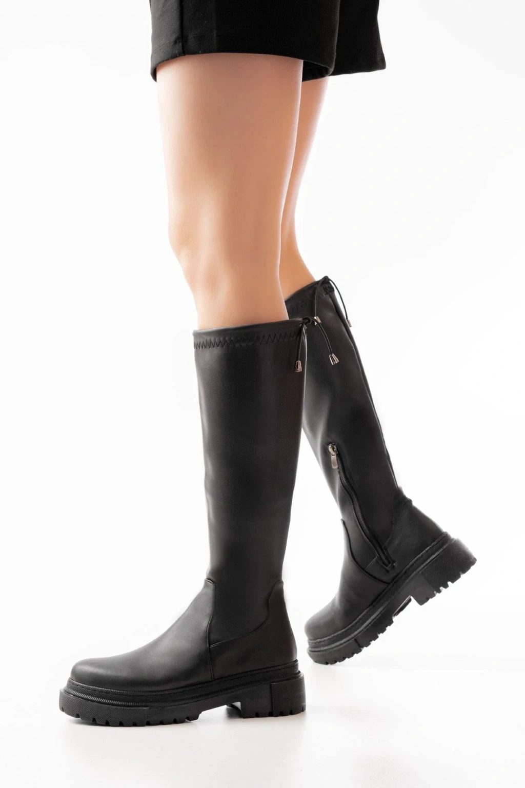 812-2291 Siyah Fermuarlı Günlük Kadın Çizme