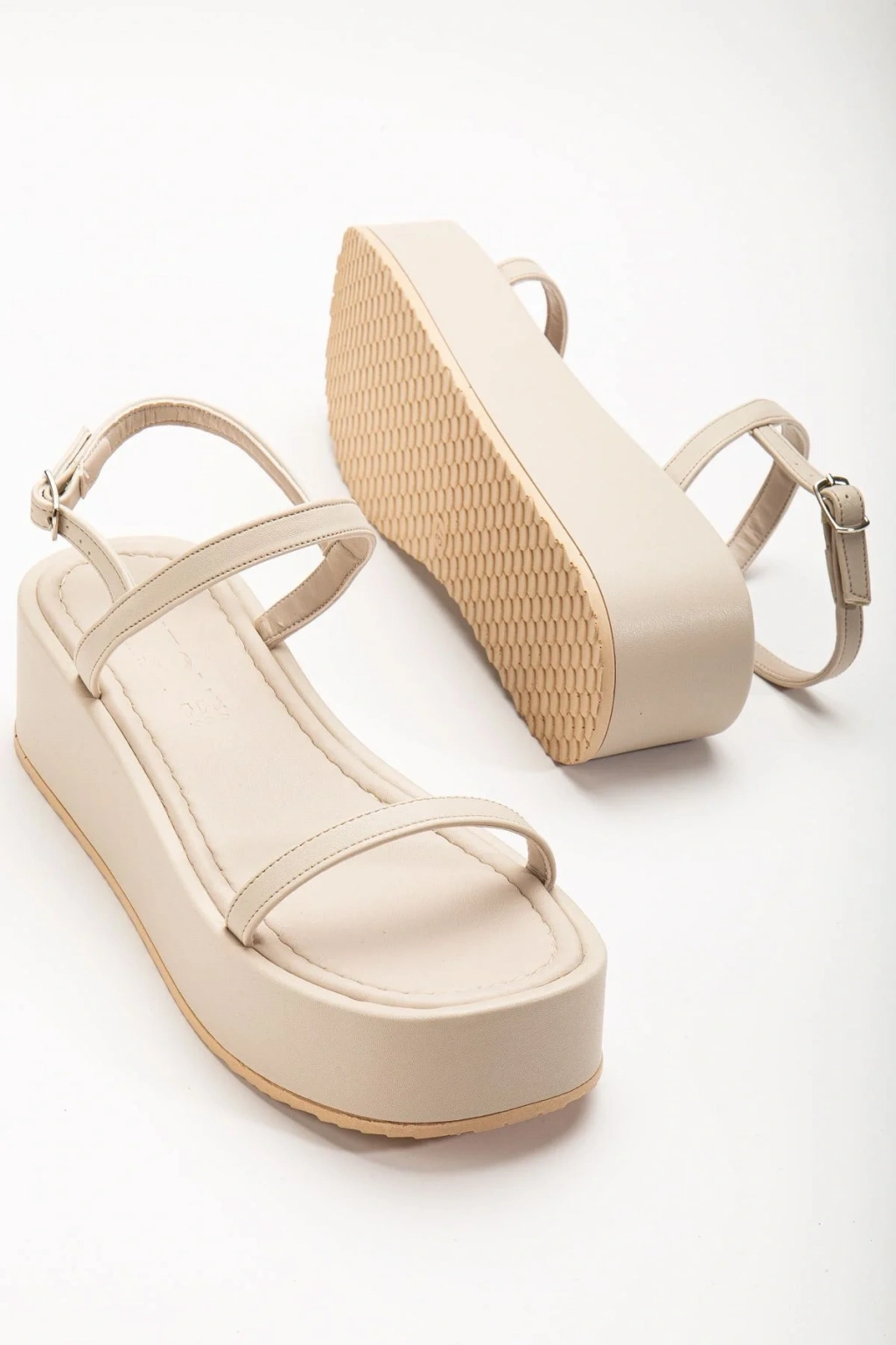 861-1027 Bej Dolgu Topuk Kadın Sandalet