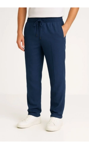 Erkek Cizgili Dokuma Krep Jogger Buggy Pantalon Rahat kalıp - Lacivert