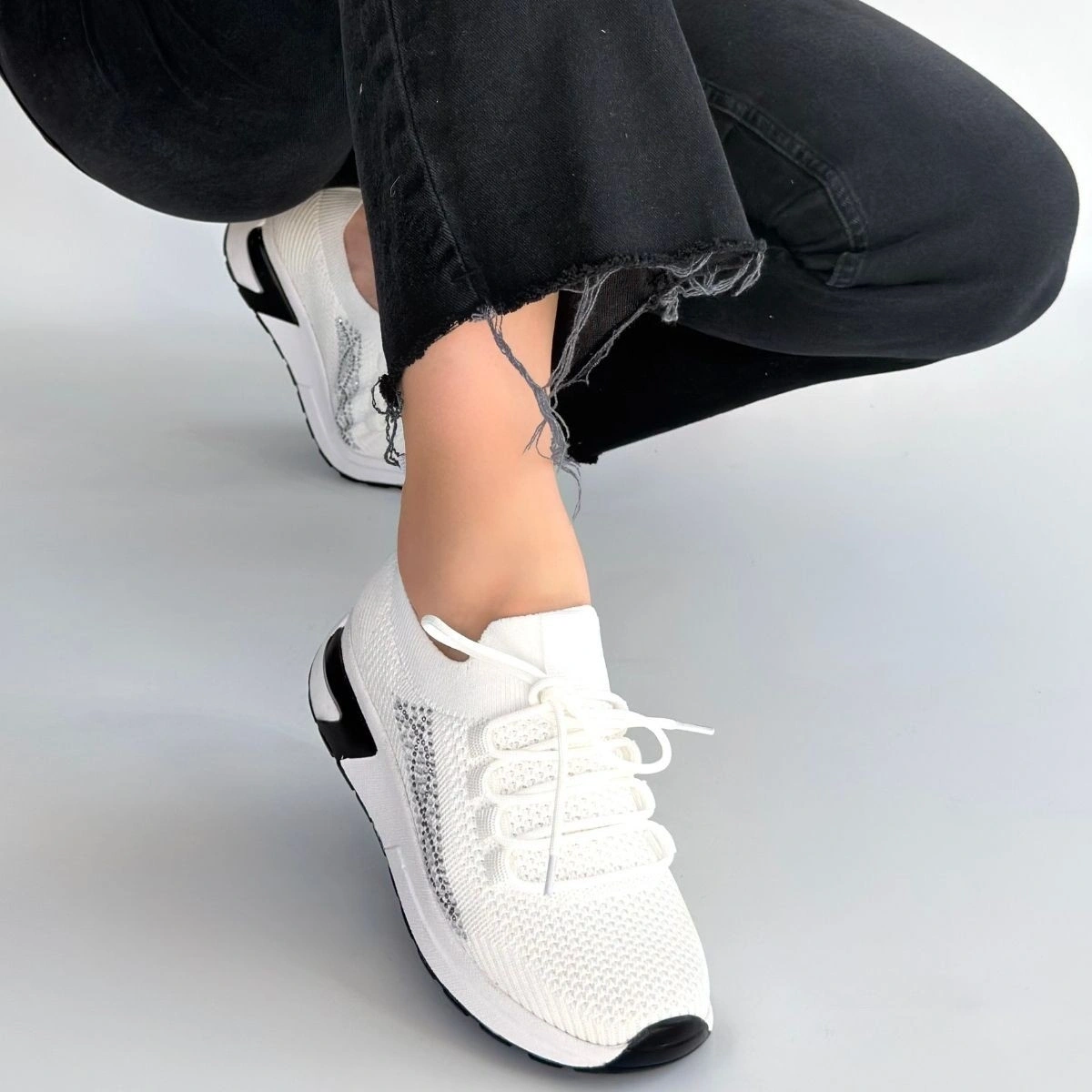 Belan Beyaz Triko Bağcıklı Spor Ayakkabı