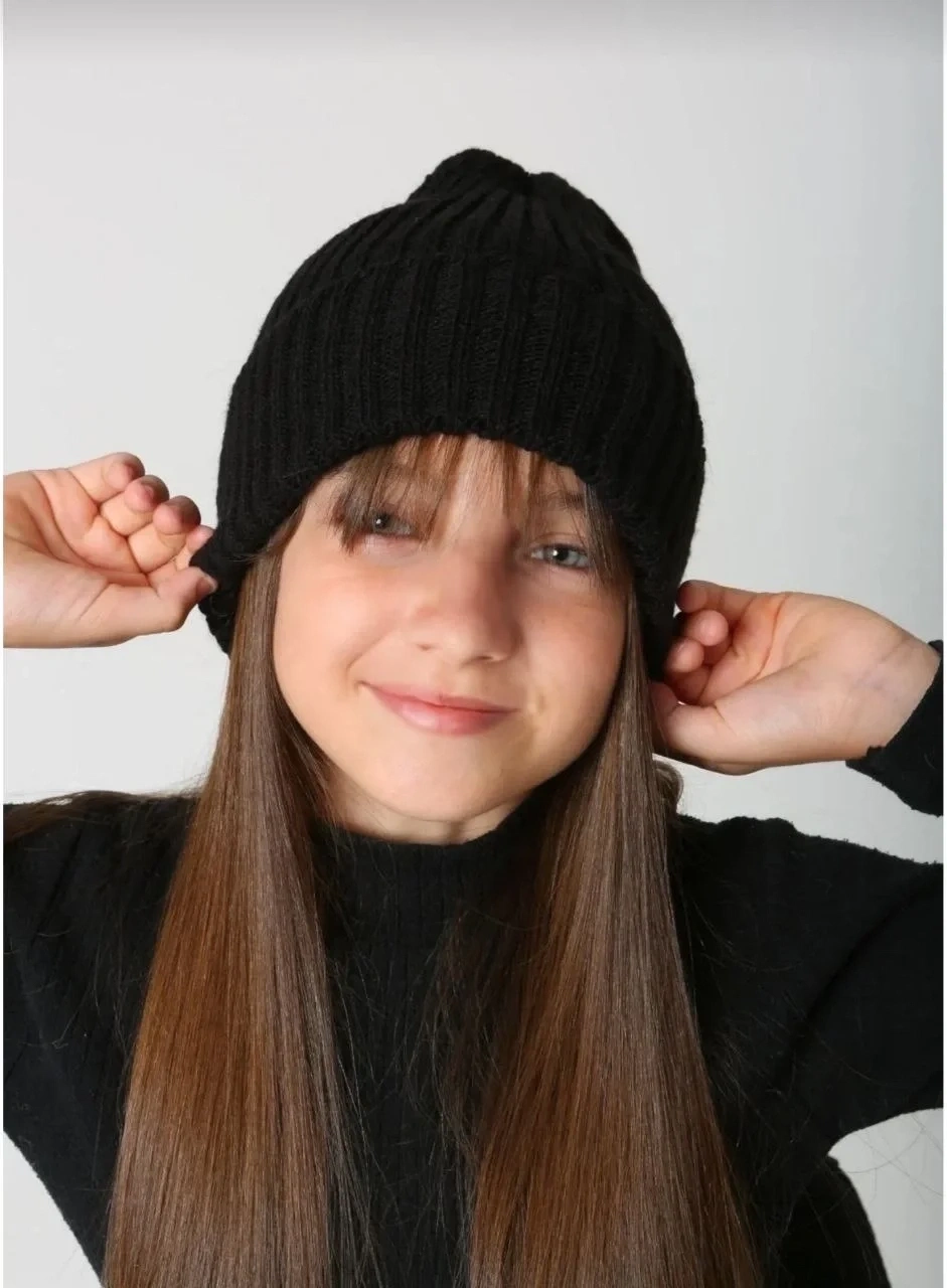 Çocuk Dokuma Triko Bere - Siyah