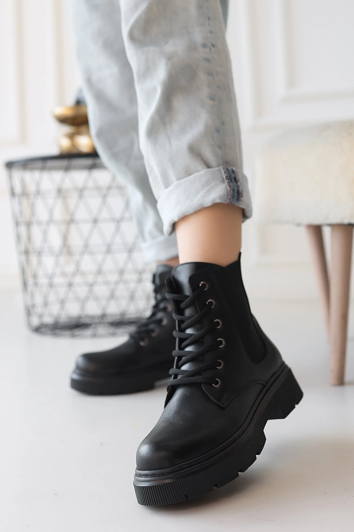 Detay : Topuklu Yandan Fermuarlı Lastikli Bağcıklı Bot