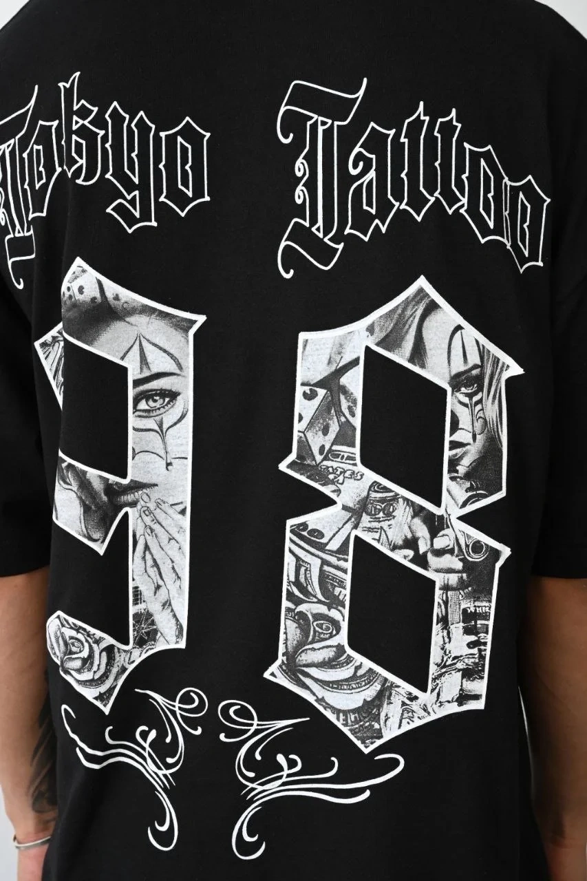 Erkek Kısa Kol Yazlık Tişört Bisiklet Yaka Baskılı Oversize T-Shirt - Siyah