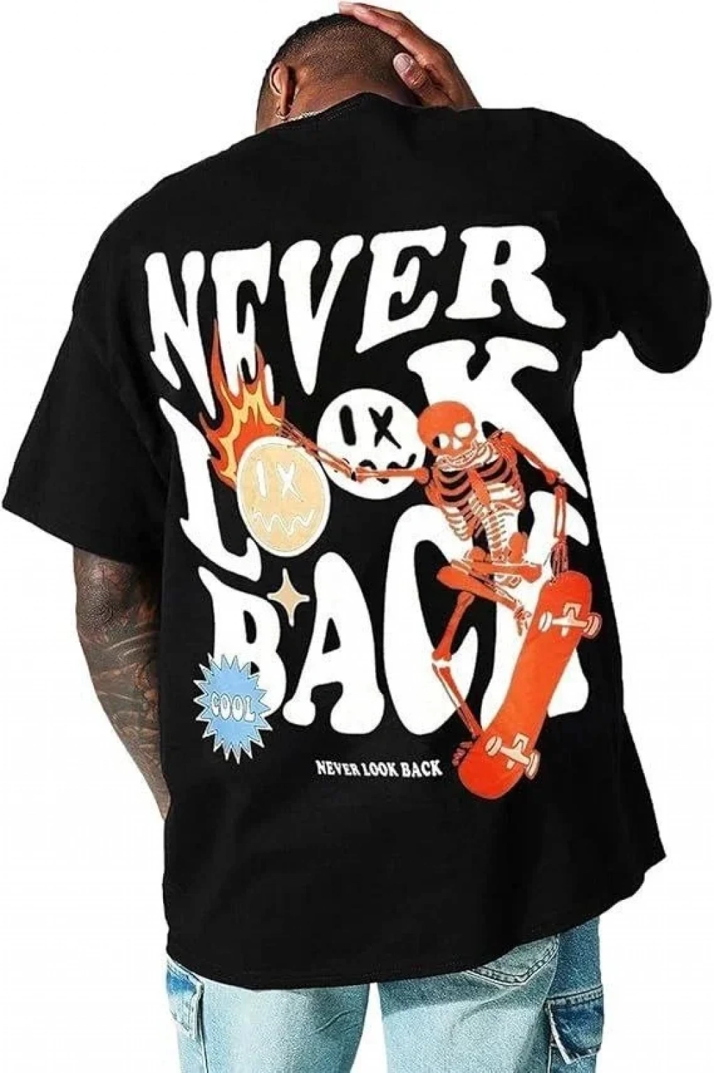 Erkek Bisiklet Yaka Kısa Kol Baskılı T-shirt - Siyah