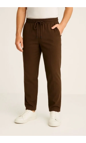 Erkek Diagonel Mikro Dokulu Cepli Beli Lastilki Pantolon - Beyaz