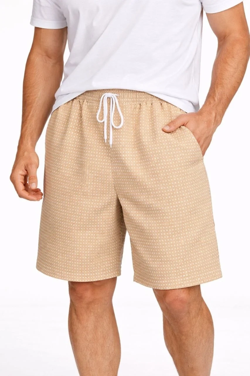 Erkek Pötikareli Şort – Beli Lastikli Bağcıklı, Cepli, Rahat Kesim Günlük Yazlık Şort - Füme