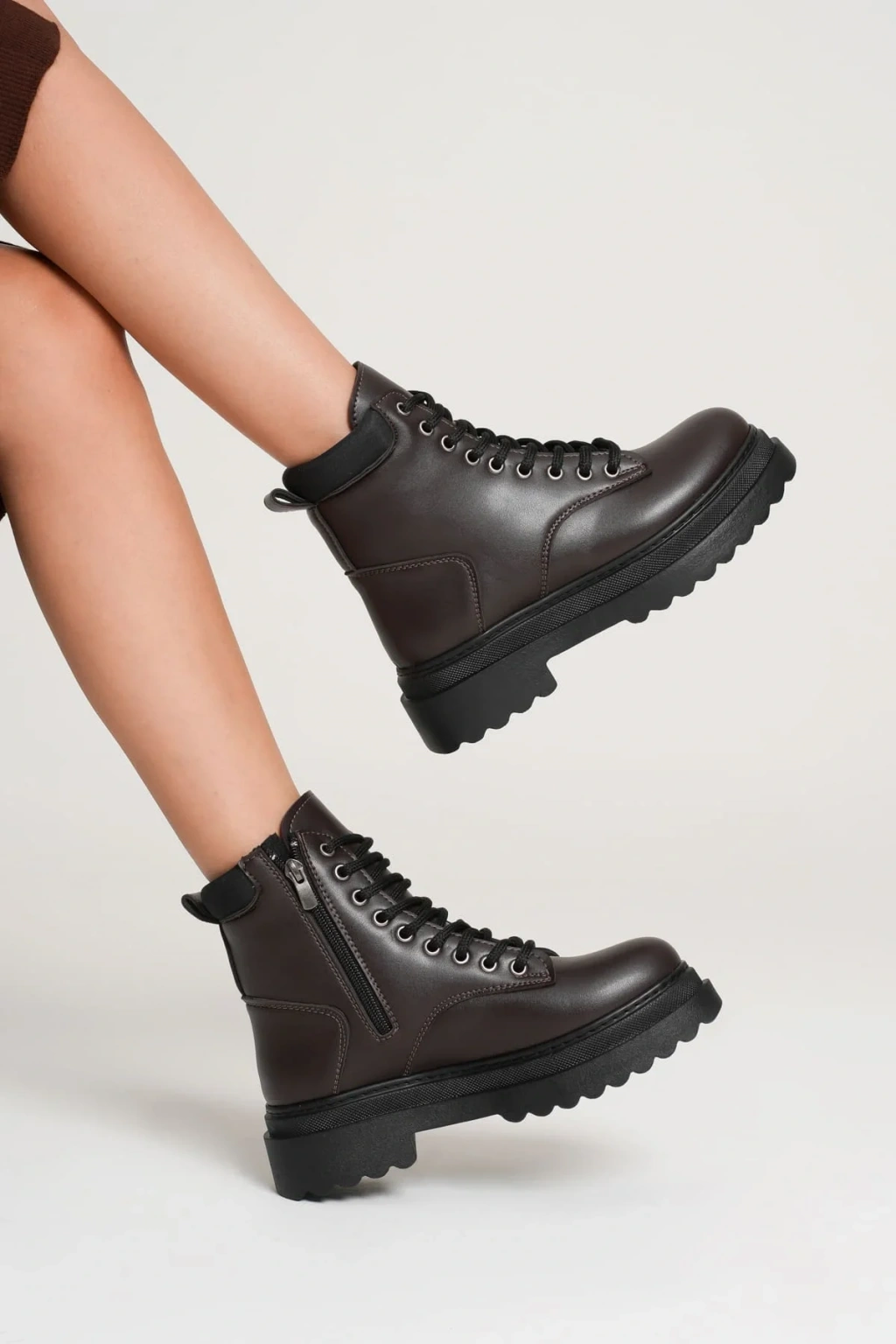 Fiora: Gücün ve zarafetin acı kahve bot hali! Modern tasarımı ve kalın tabanıyla şehirde stilini, doğada adımlarını güçlendir.