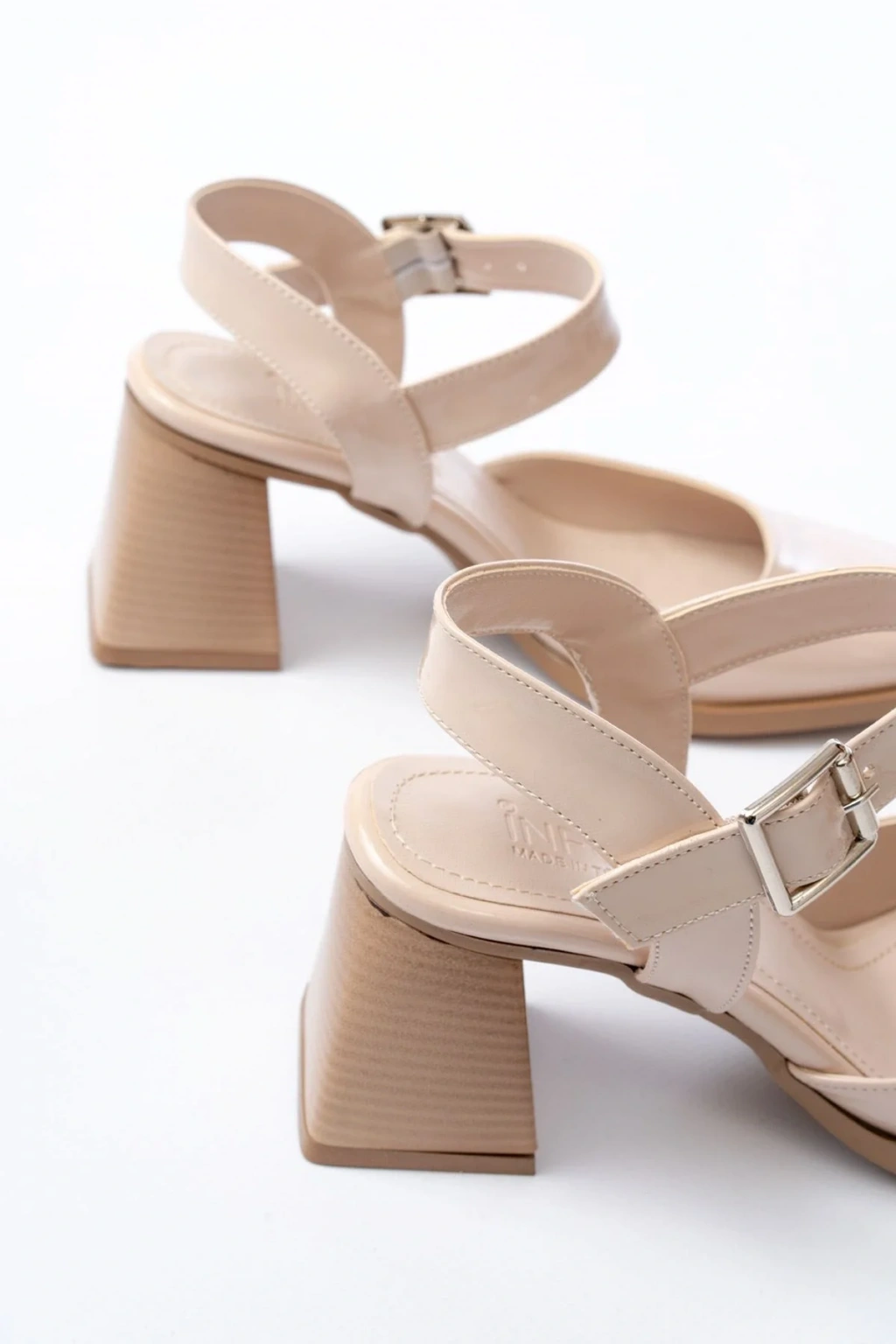 İNF-40450 Bej Rugan Günlük Arkası Açık Topuklu Bayan Ayakkabı