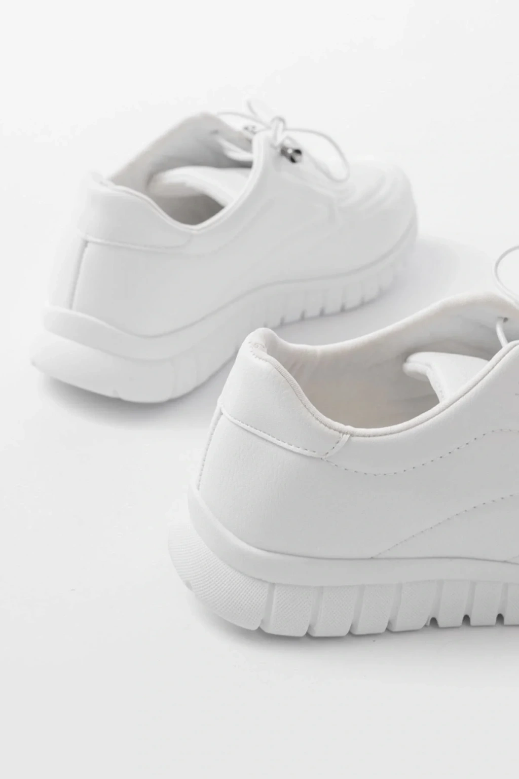 K-504 Beyaz Bağcıklı Desenli Günlük Spor Ayakkabı