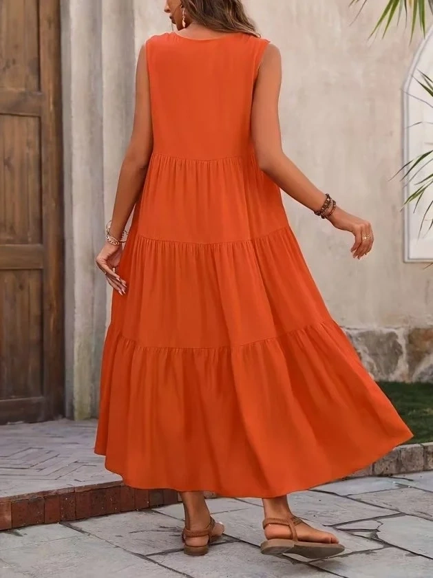 Kadın Askılı V Yakalı Uzun Dokuma Viskon Elbise