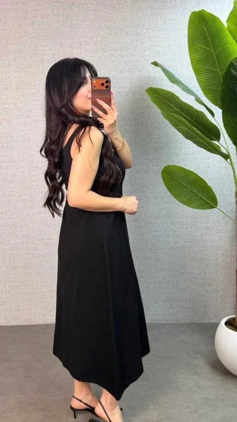 Kadın Askılı Yuvarlak Yaka Süprem Kumaş Elbise