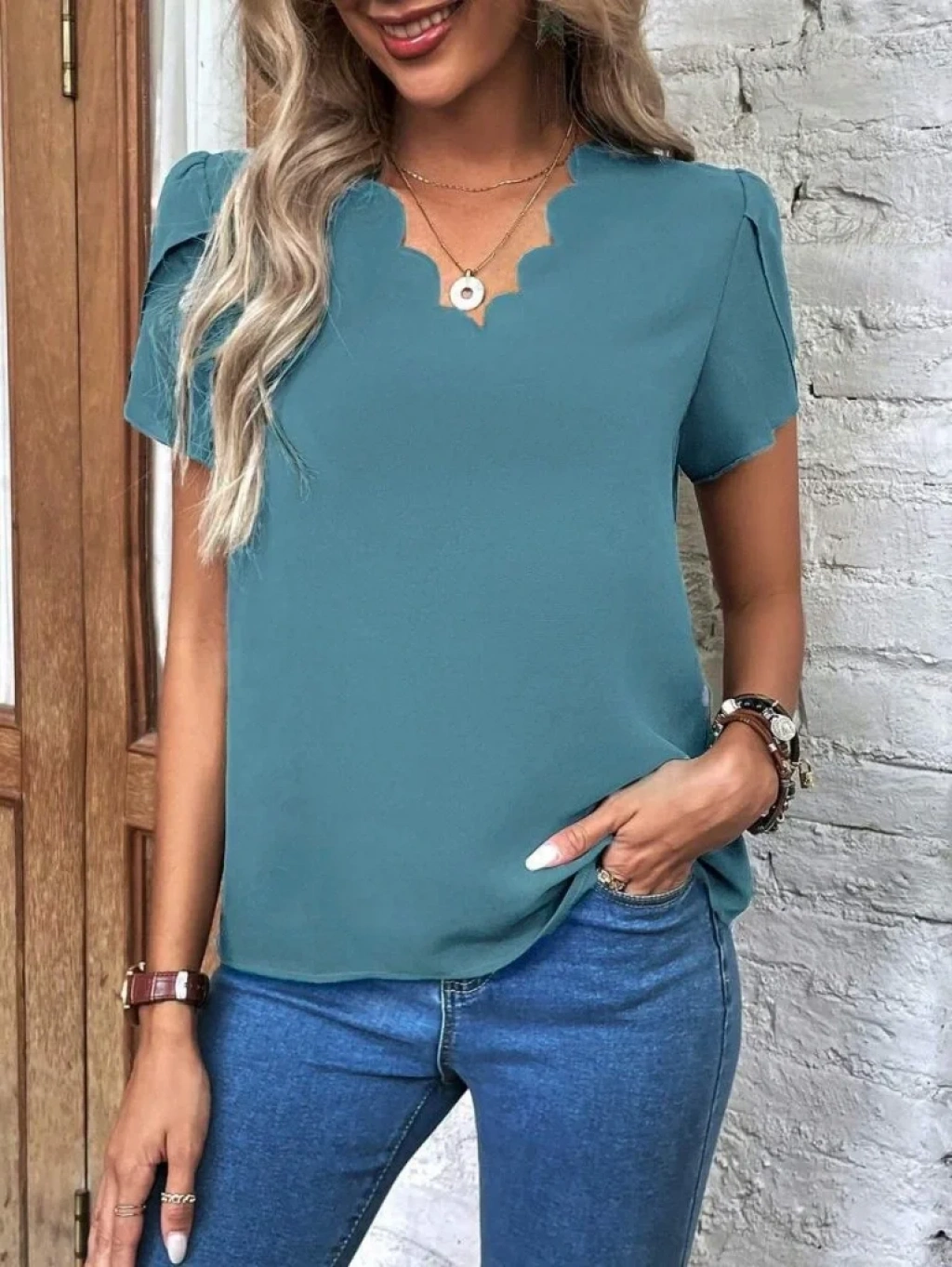 Kadın Kısa Kollu Lazer V Yakalı Ithal Krep Bluz