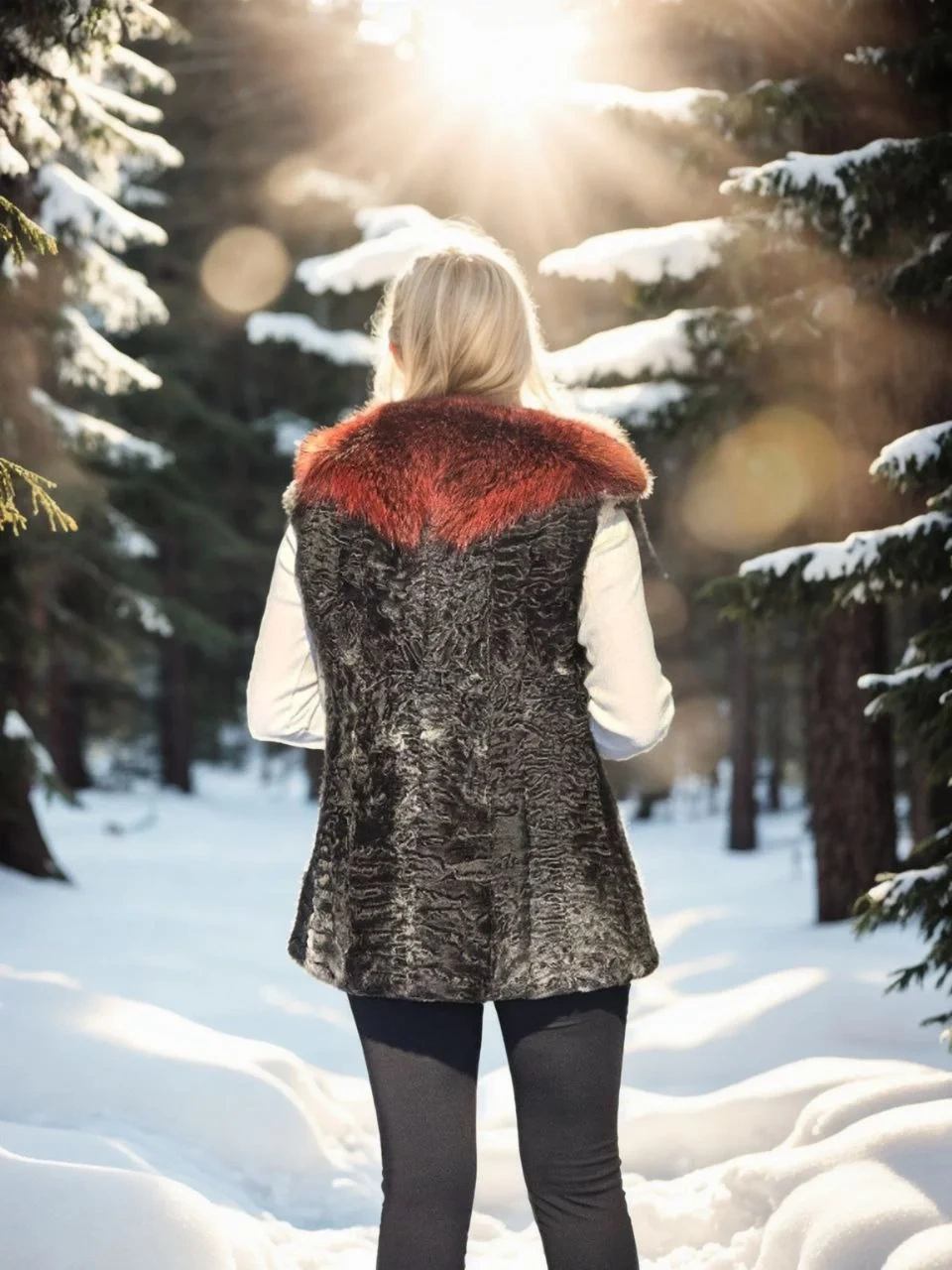 Kadın Kolsuz Hakiki Kürk - Siyah