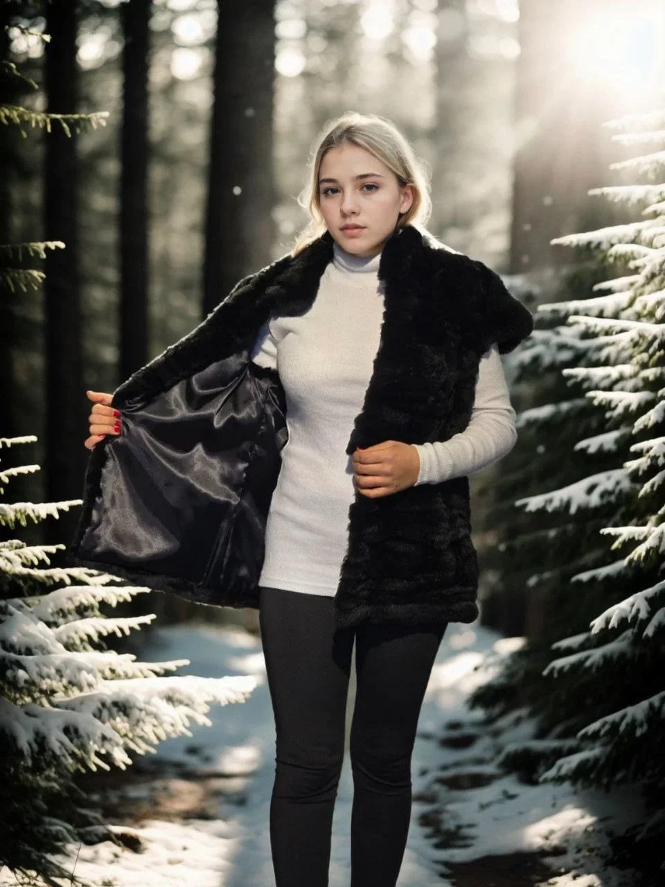 Kadın Kolsuz Hakiki Kürk - Siyah