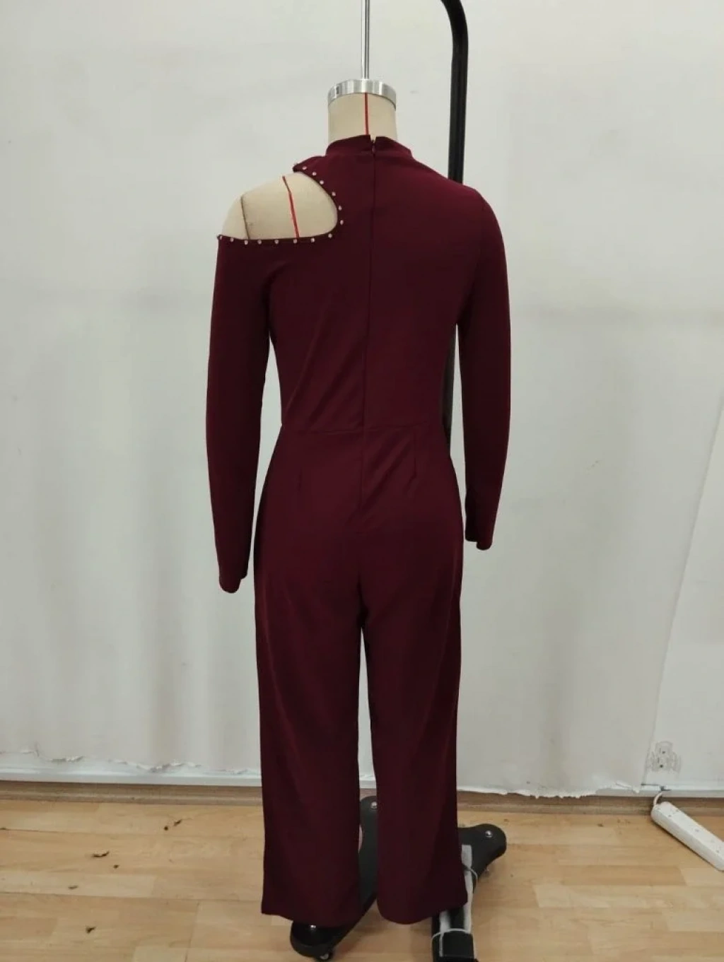 Kadın Tek Omuzdan Açık Balıkçı Yaka Taş Detaylı Uzun Ithal Krep Tulum