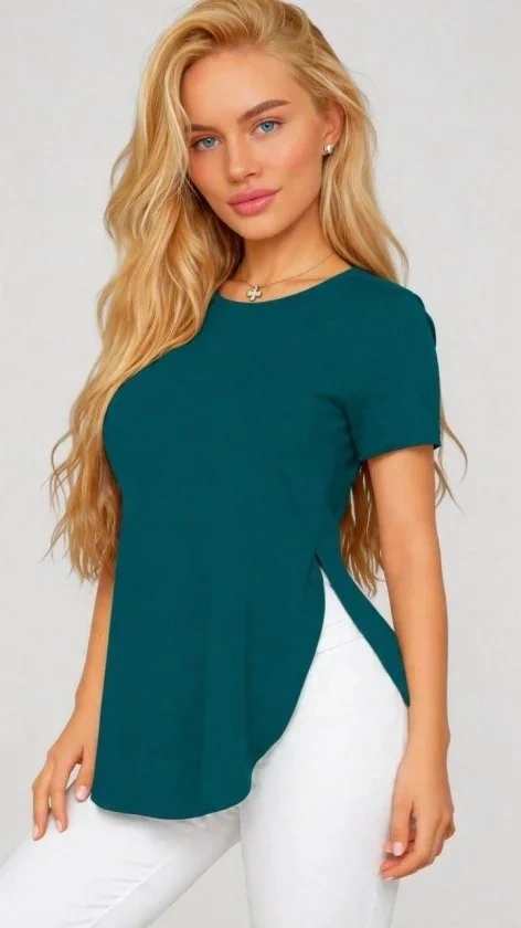 Kadın Yırtmaç Detaylı Viskon Kumaş Bluz