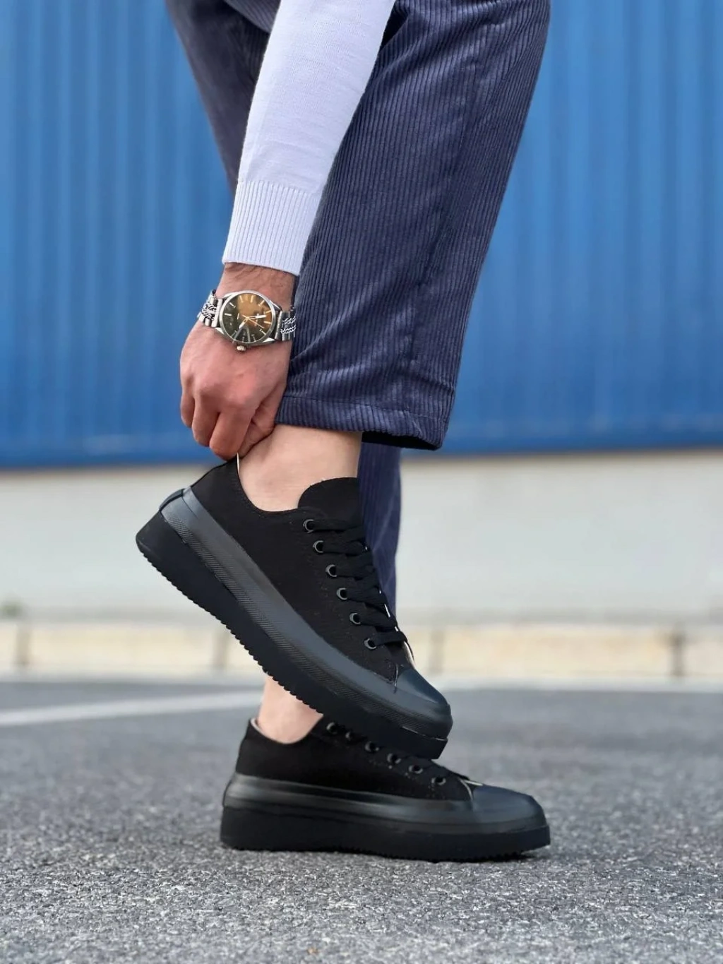 KB-CX-3 Kuback Kısa Siyah Keten Siyah Yüksek Taban Spor Ayakkabı