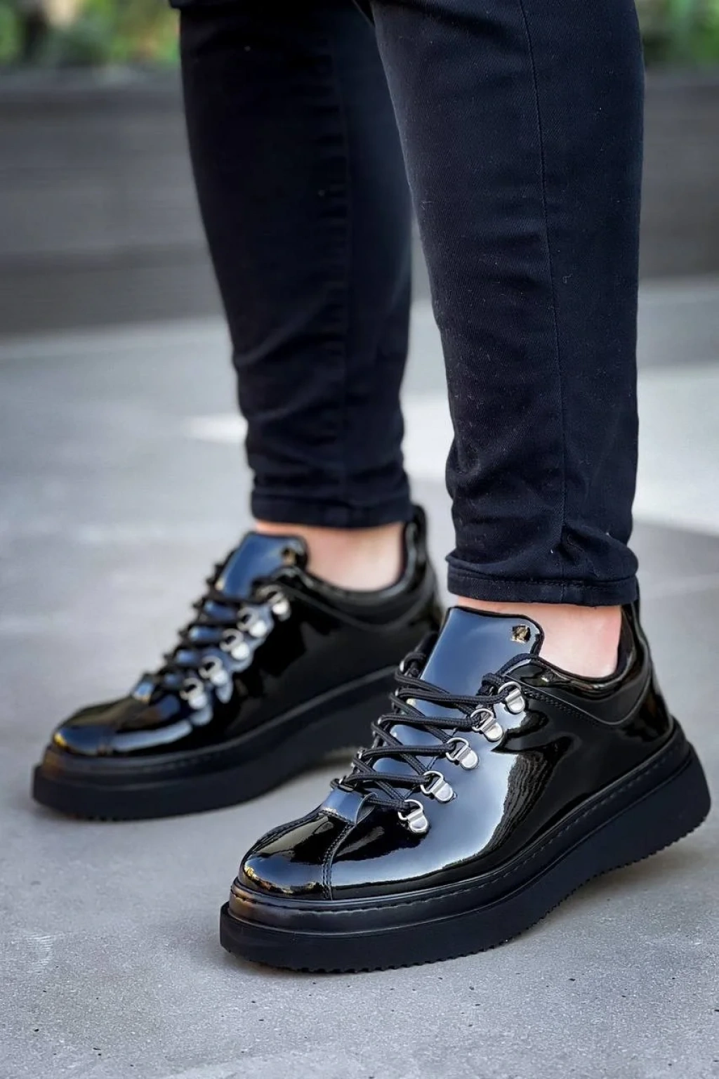 KB-X4 Kuback Siyah Rugan Siyah Yüksek Taban Bağcıklı Günlük Erkek Ayakkabı