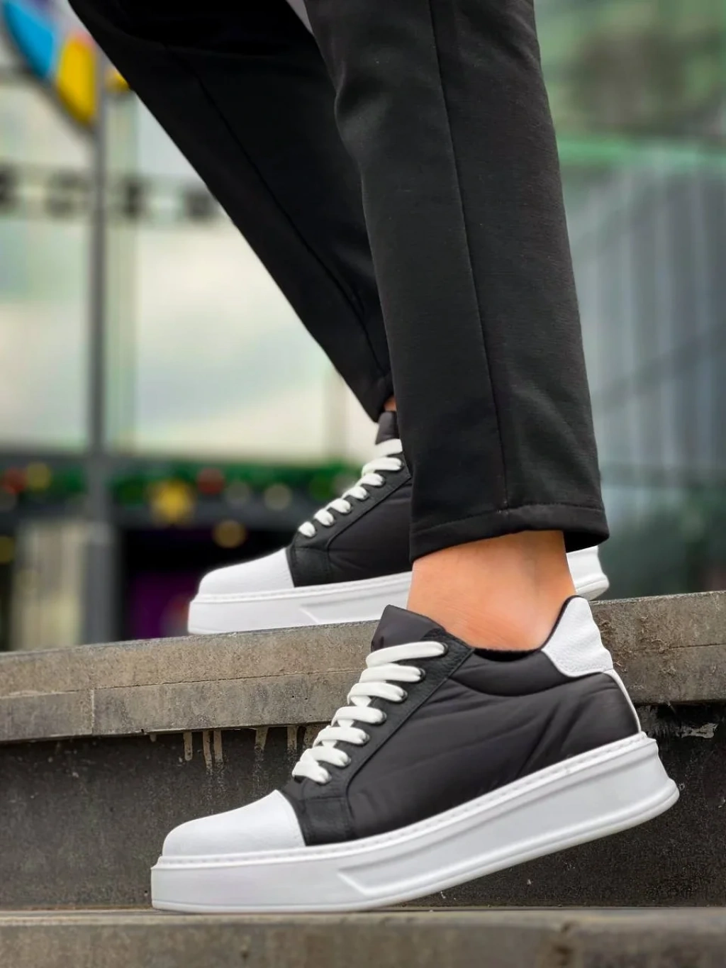 KB-X46 Kuback Siyah Beyaz Yüksek Beyaz Taban Günlük Spor Ayakkabı