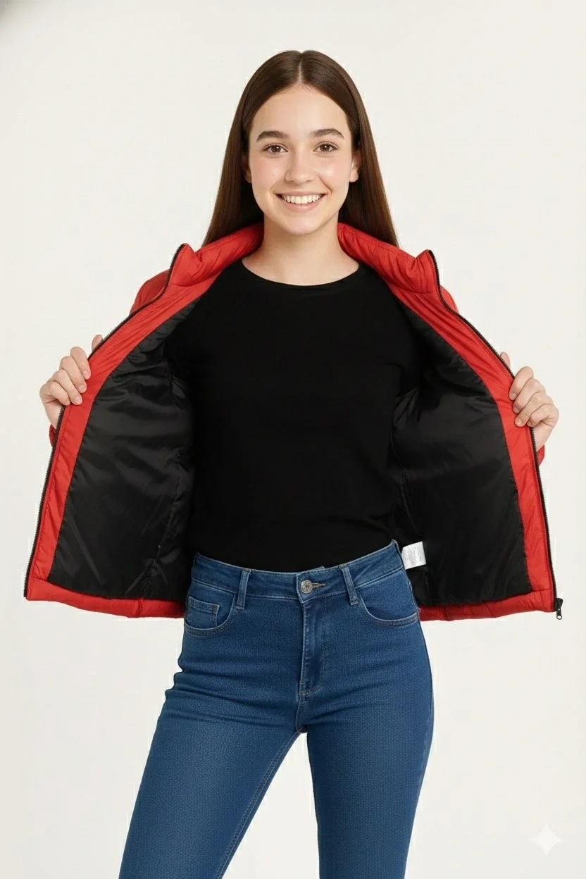 Erkek Çocuk Şişme Mont Hafif ve Sıcak Tutucu Kışlık Fermuarlı Su İtici Rahat Günlük Mont Kapüşonuz Modern Tasarım - Kırmızı