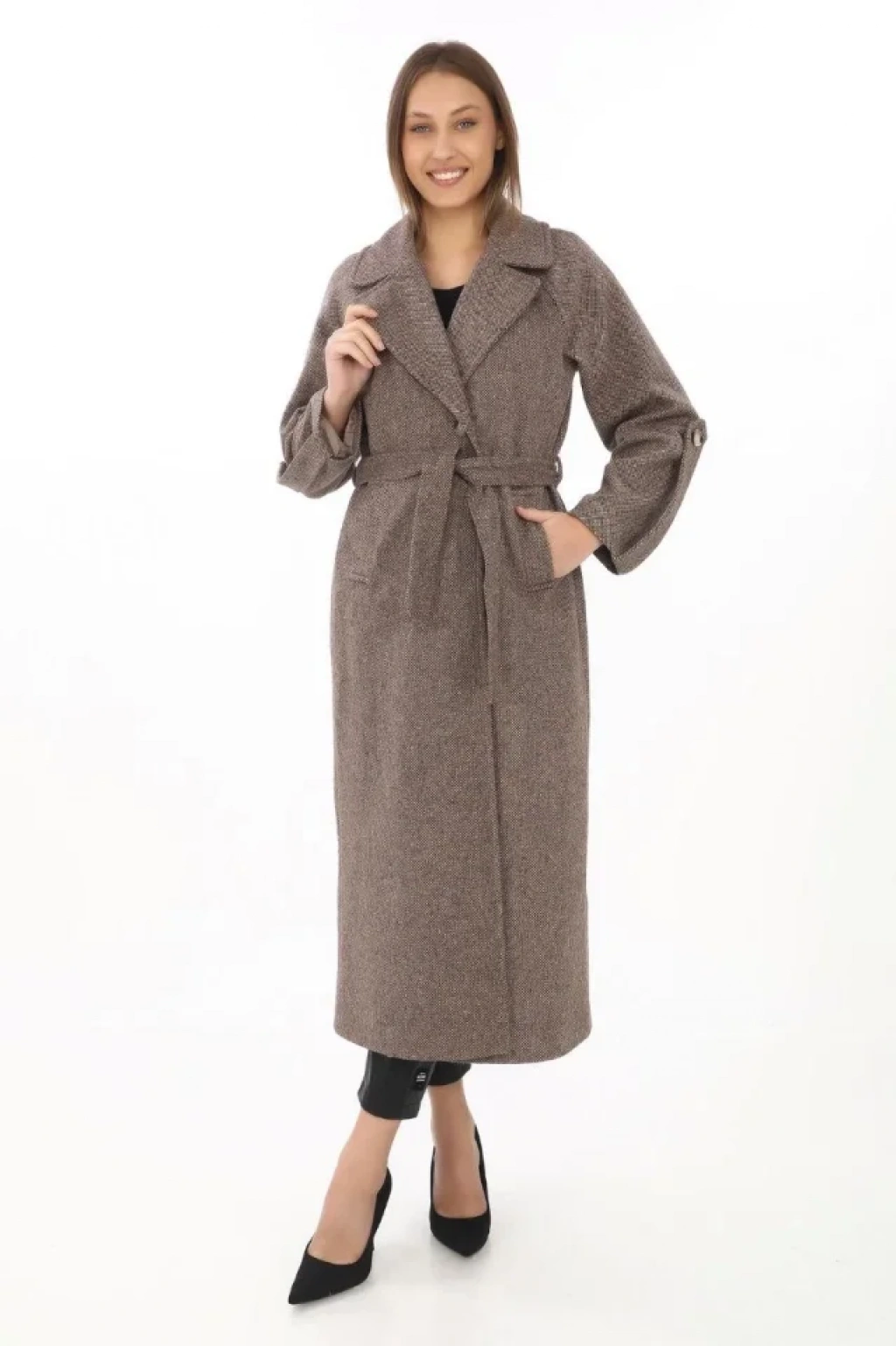 Kolu Apoletli Astarlı Kaşmir Kaşe Kaban - Vizon