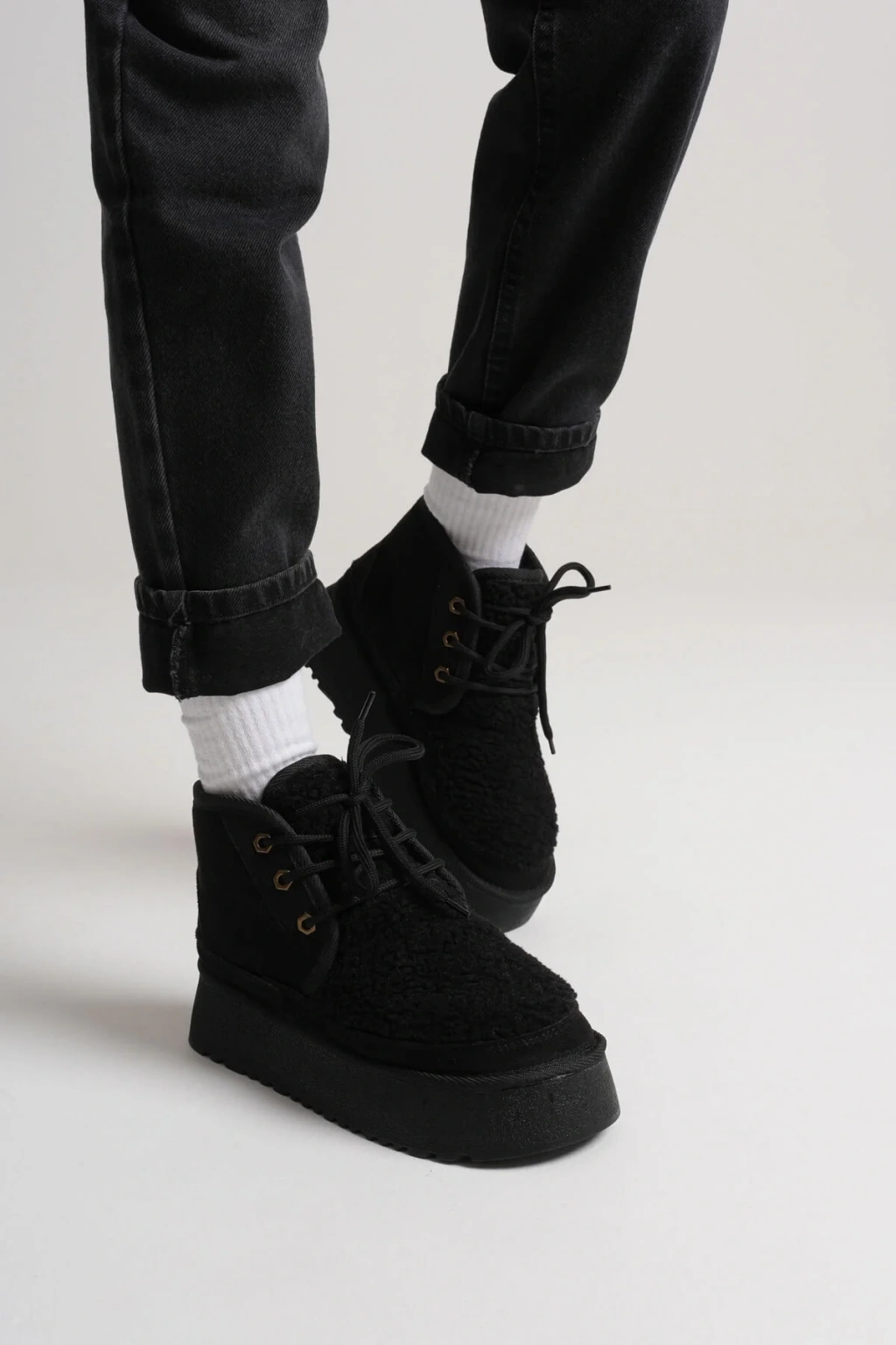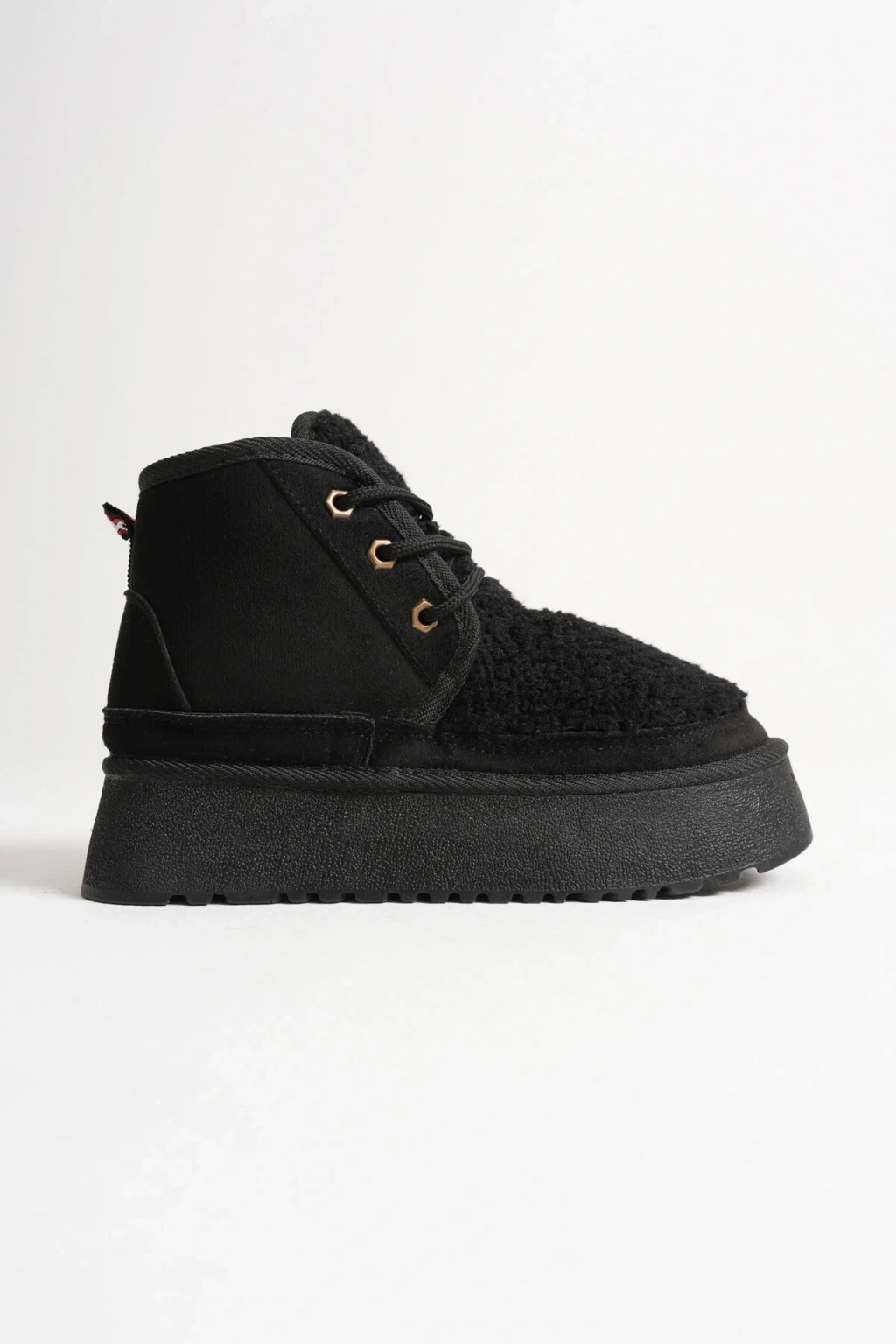 Loana Siyah Kürklü Kadın Kışlık Kalın Tabanlı Bot