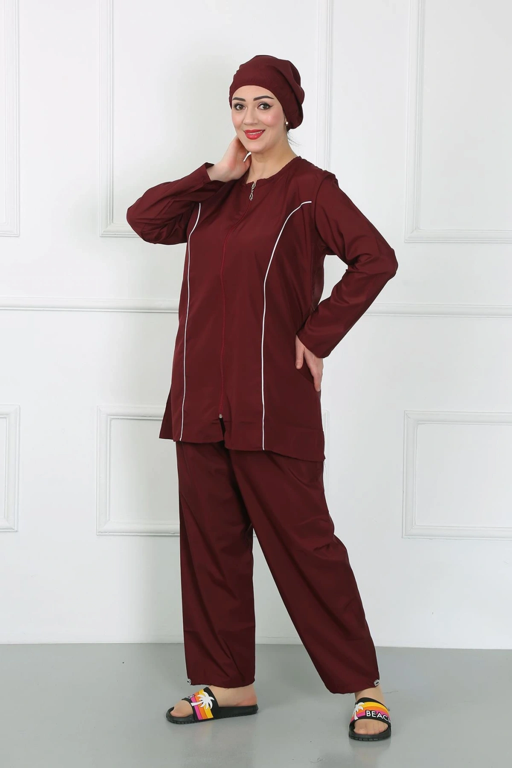 Moda Çizgi Büyük Beden Tesettür Büyük Mayo Bordo 44010