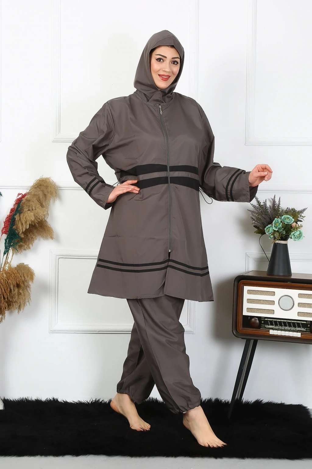 Moda Çizgi Büyük Beden Tesettür Mayo 7XL-8XL-9XL-10XL Füme 55010