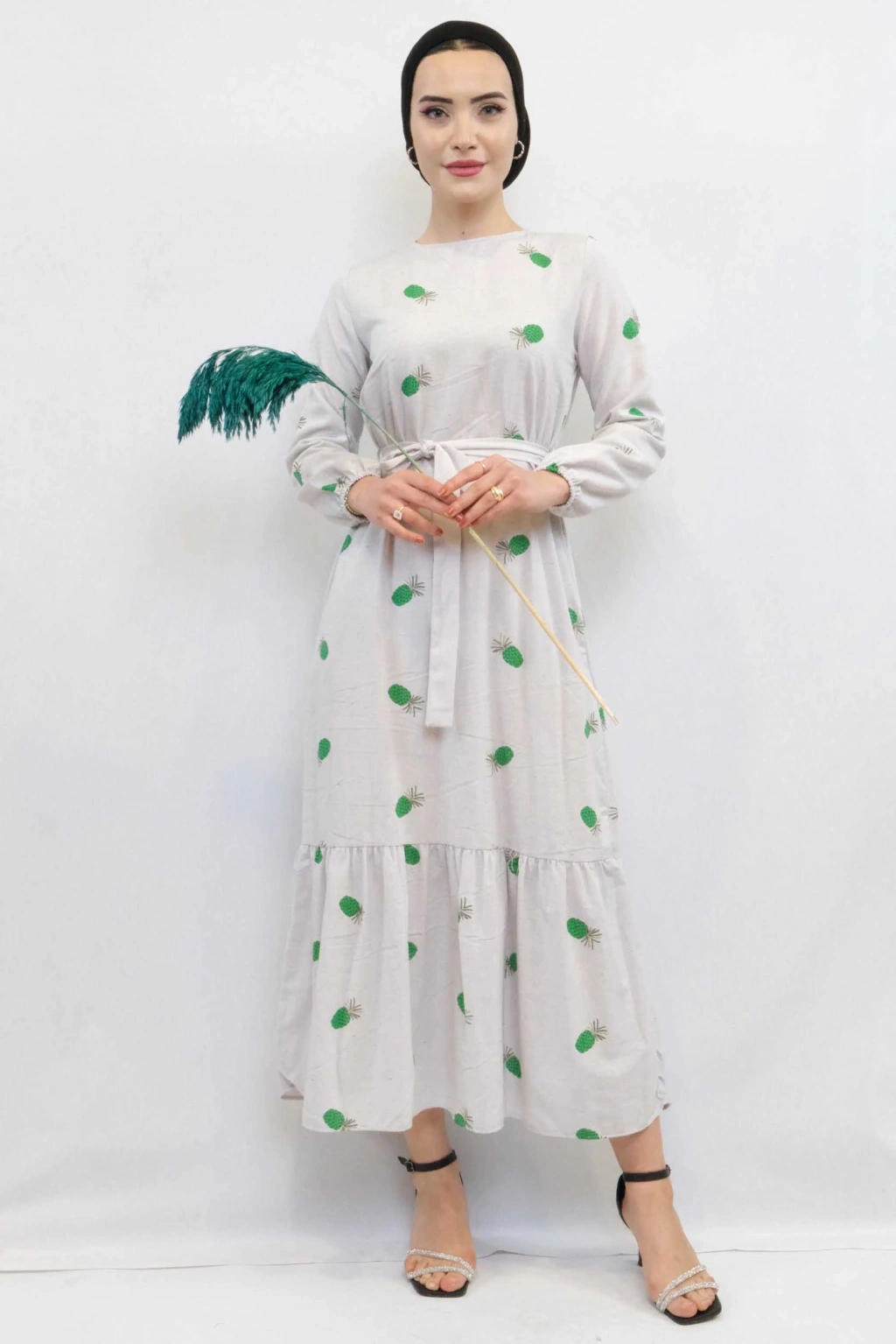 Moda Çizgi Desenli Elbise Yeşil