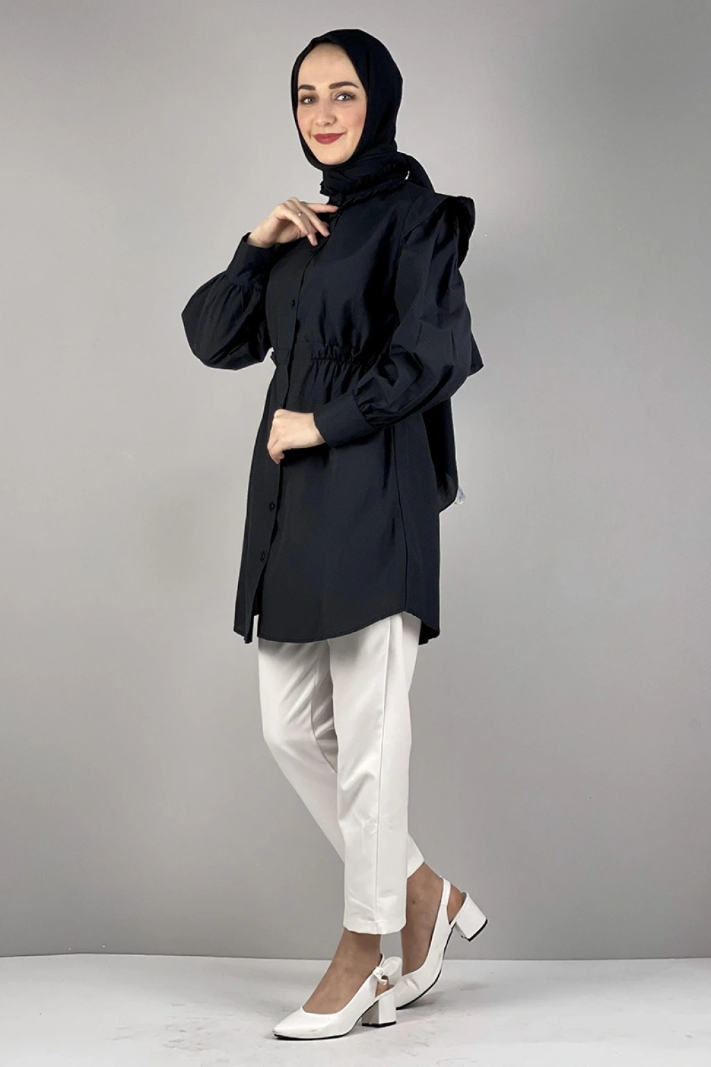 Bel Ve Yaka Detaylı Tunik Siyah