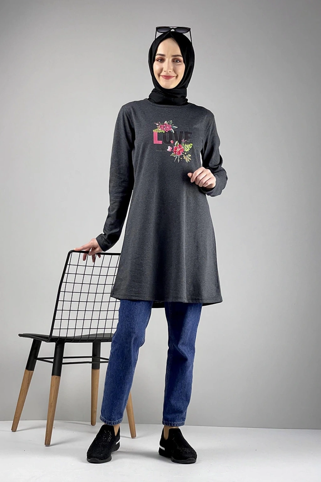 Salaş Baskılı Tunik Antrasit