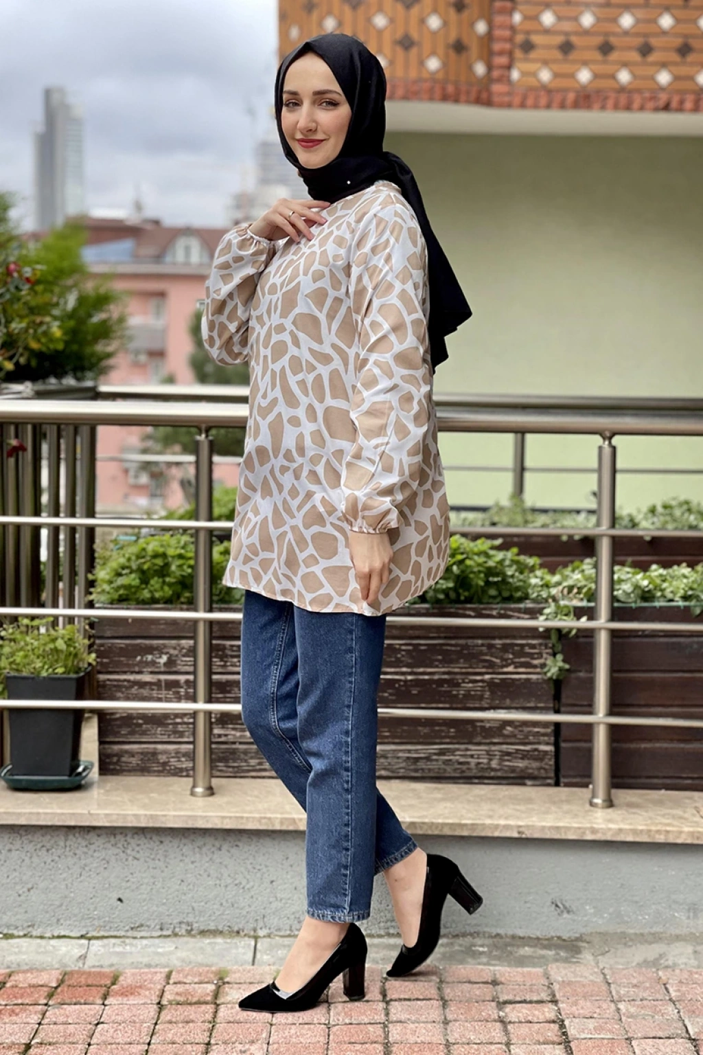 Desenli Tunik Vizon