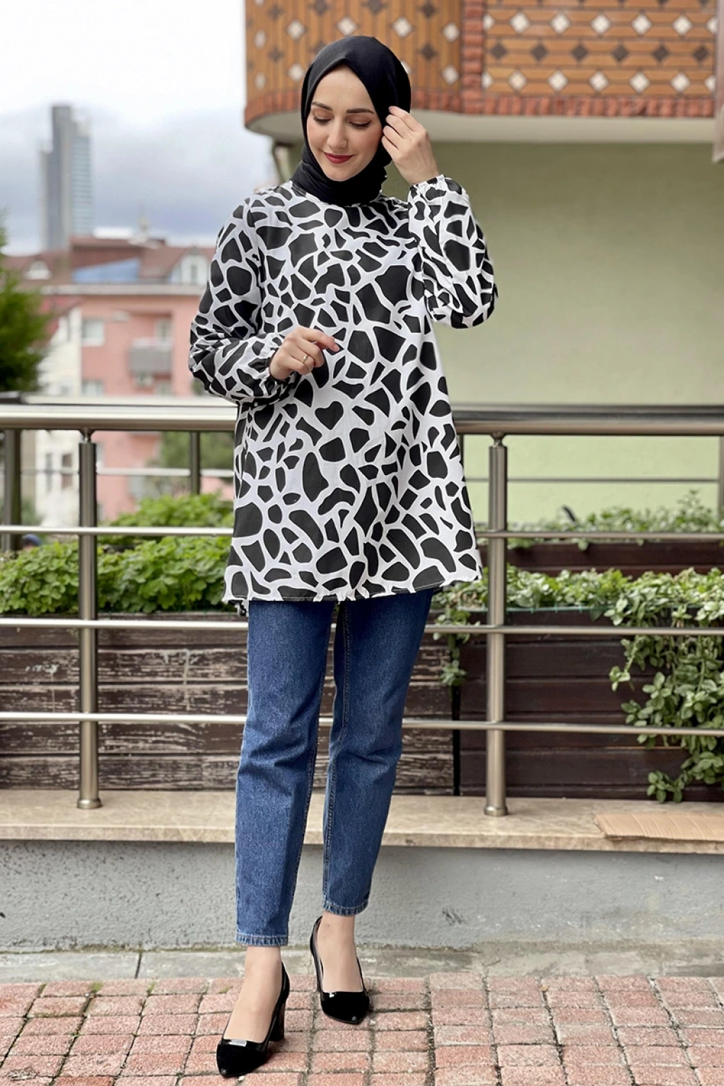 Desenli Tunik Siyah