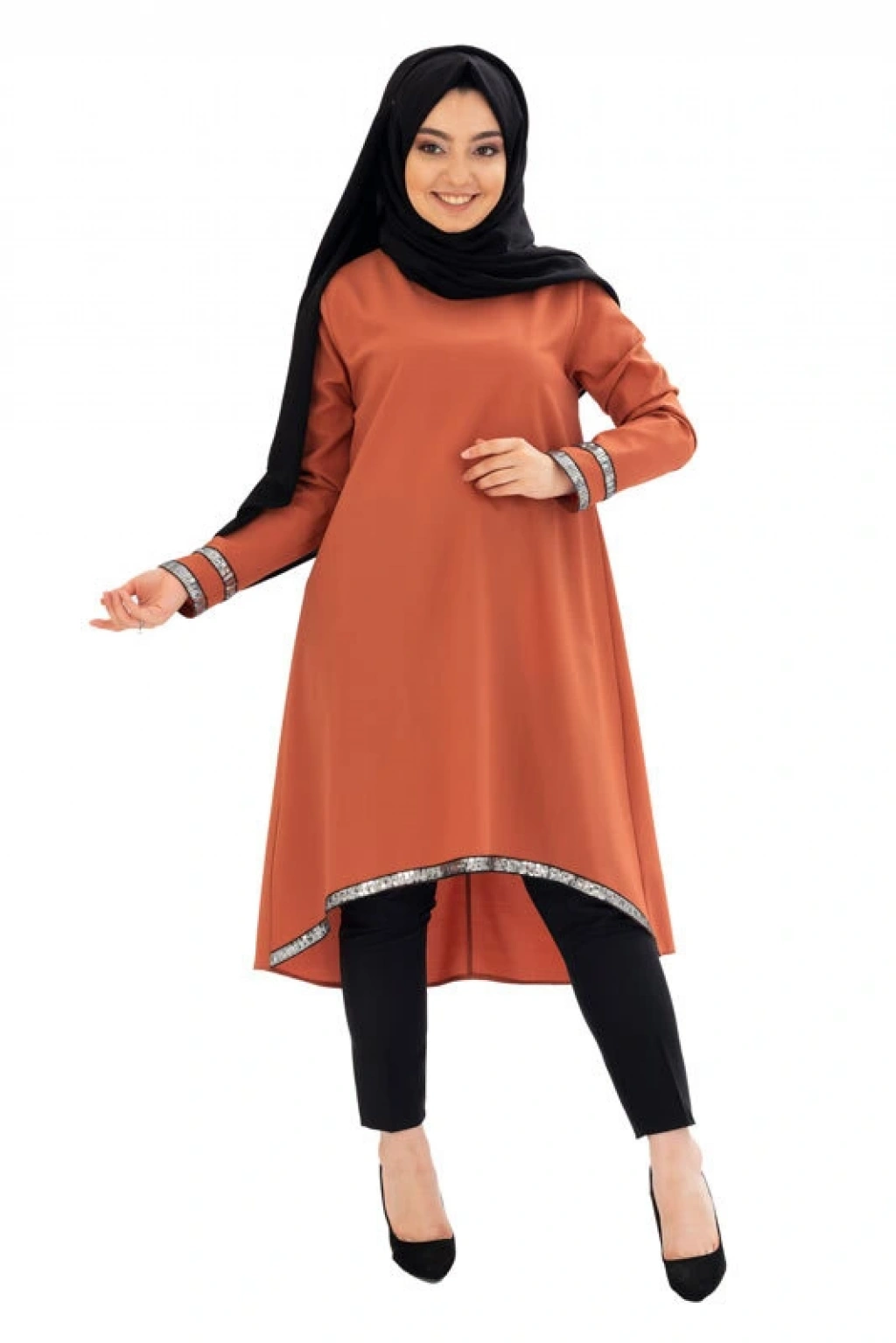 Payet Detaylı Tesettür Tunik Soğan Kabuğu 0105  Sgs