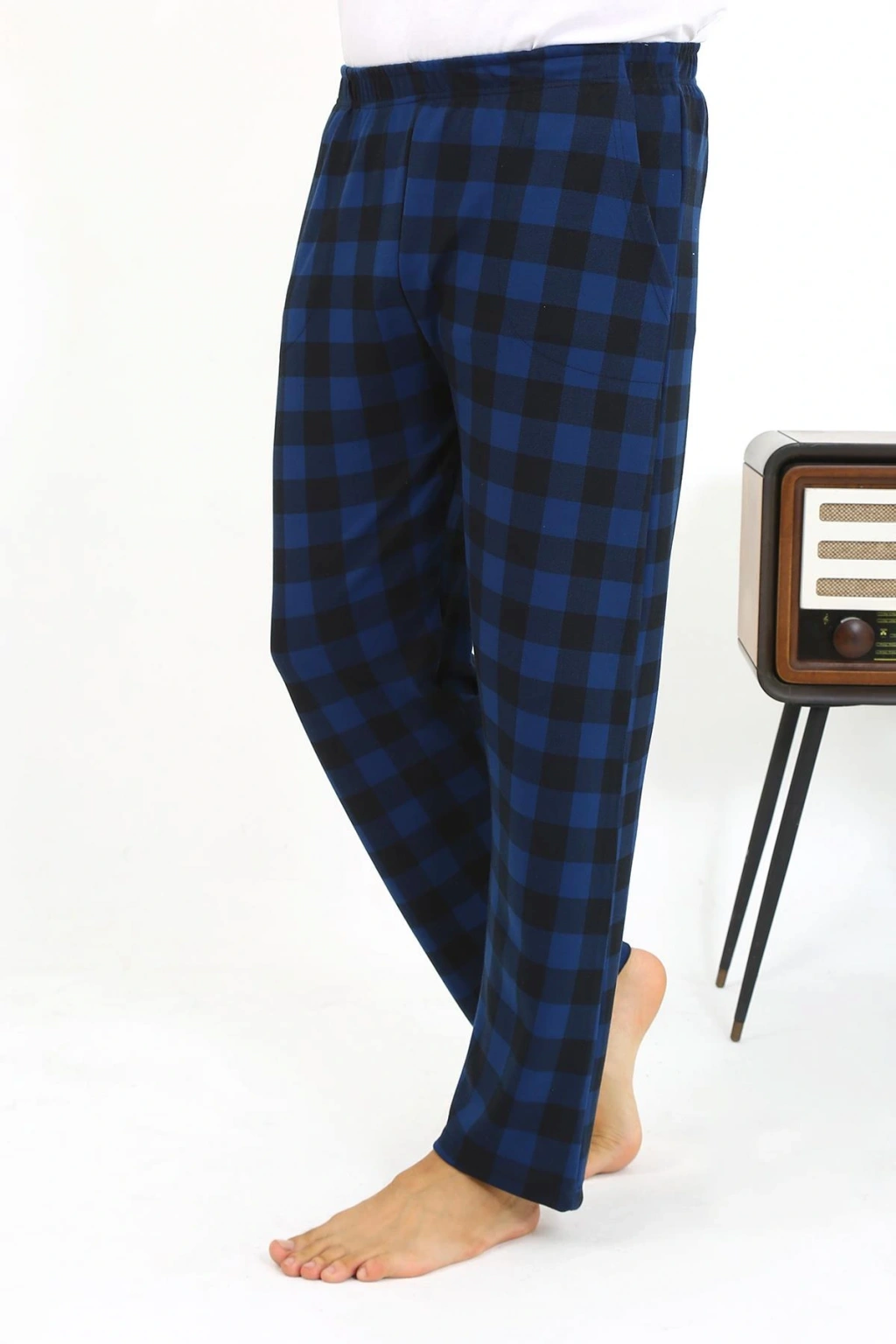 Moda Çizgi Erkek Ekoseli Desen Penye Tek Alt Pijama 27540 Siyah
