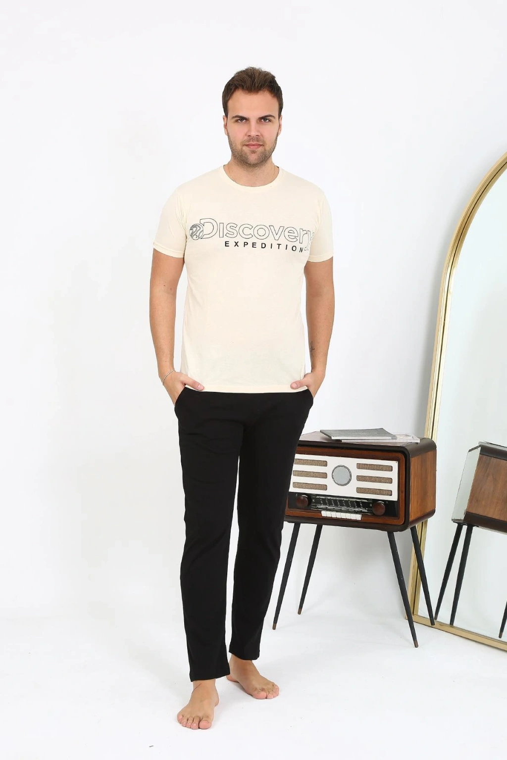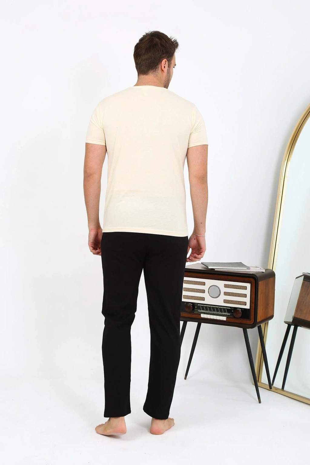 Moda Çizgi Erkek Kısa Kol Penye Pijama Takımı 6866 Krem