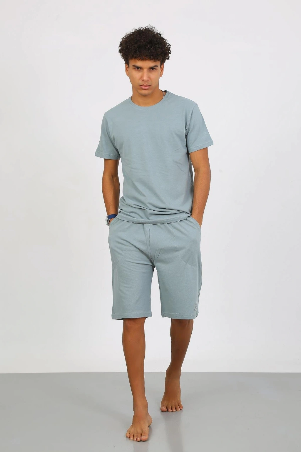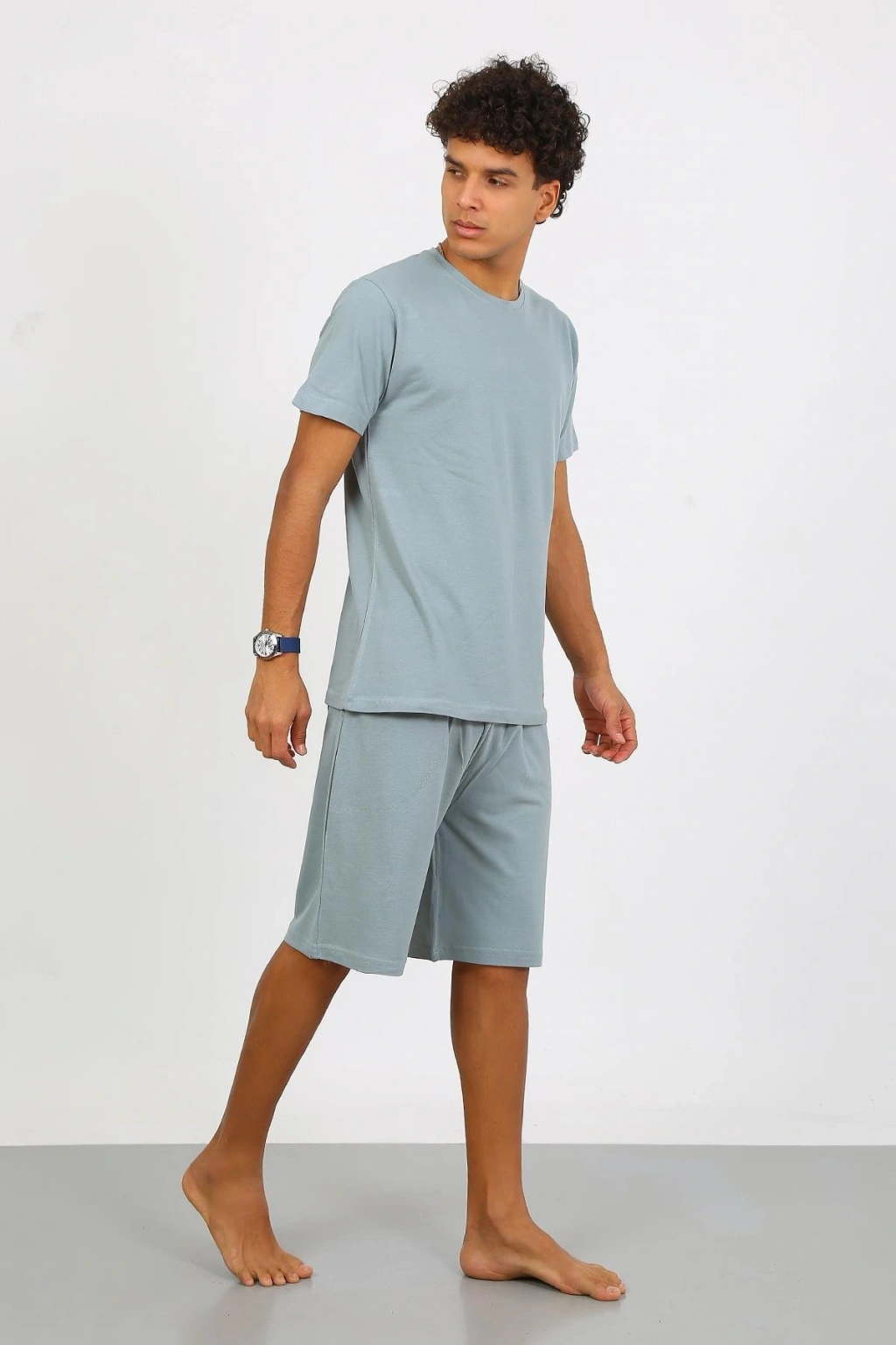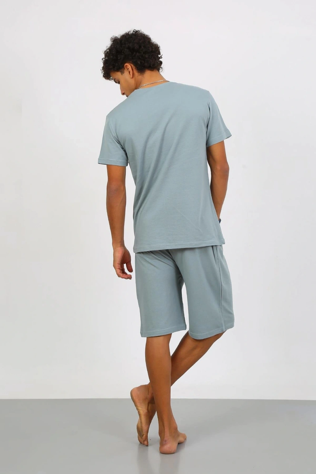 Moda Çizgi Erkek Pamuk Lakost Alt Üst Kaprili Pijama Takım SuYeşili 6872