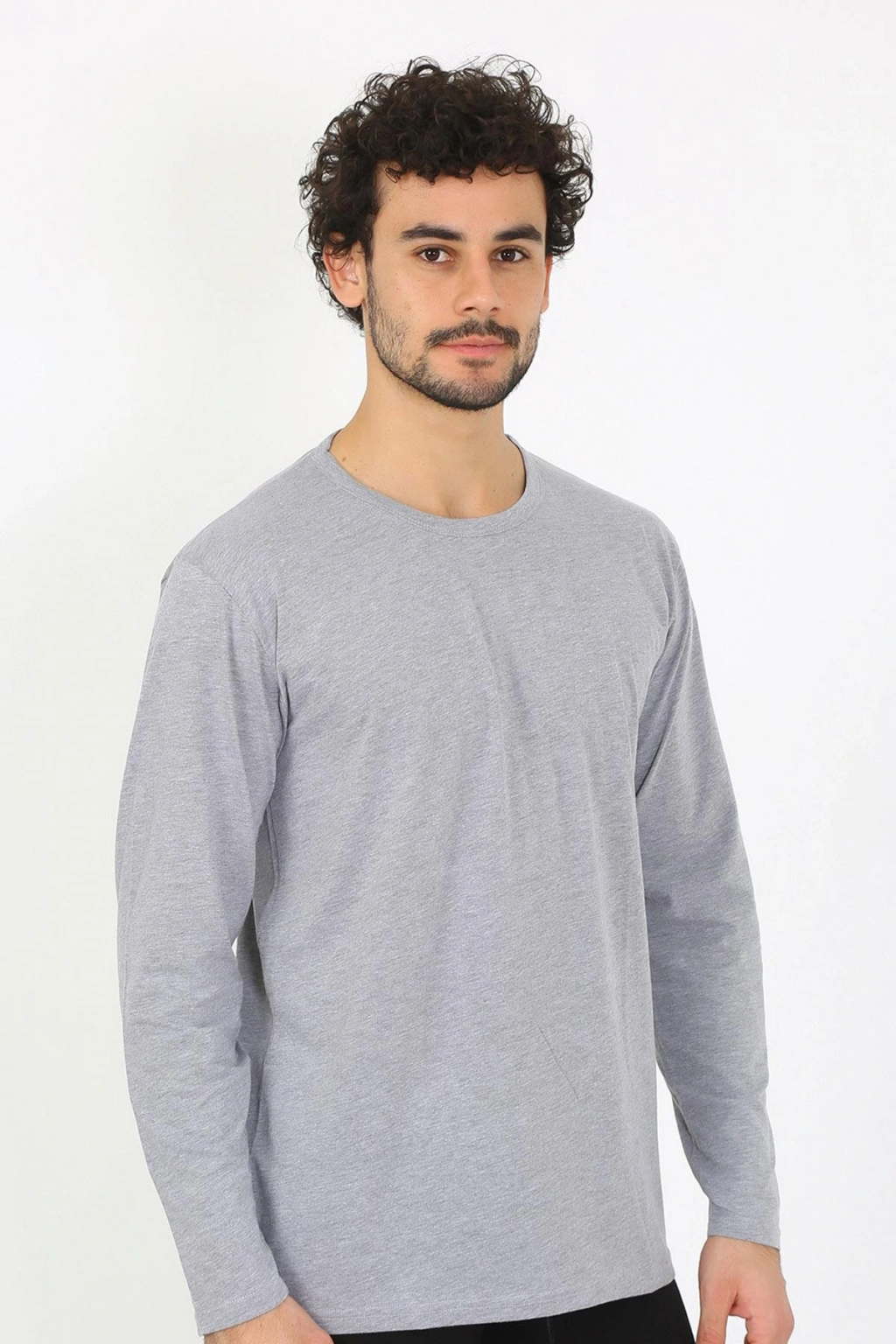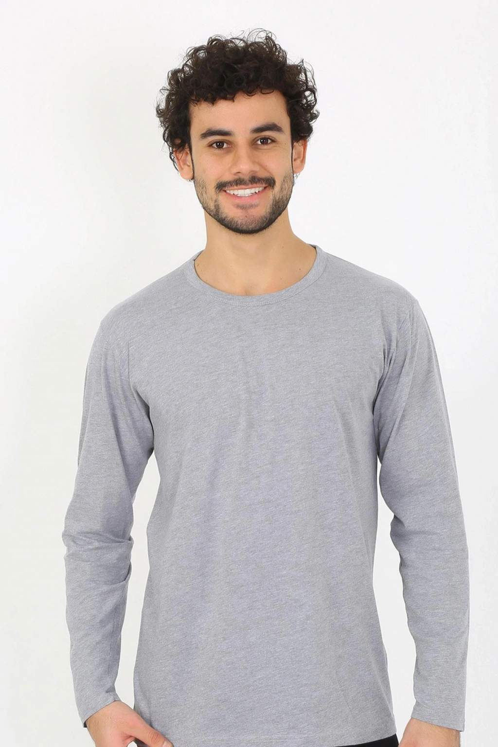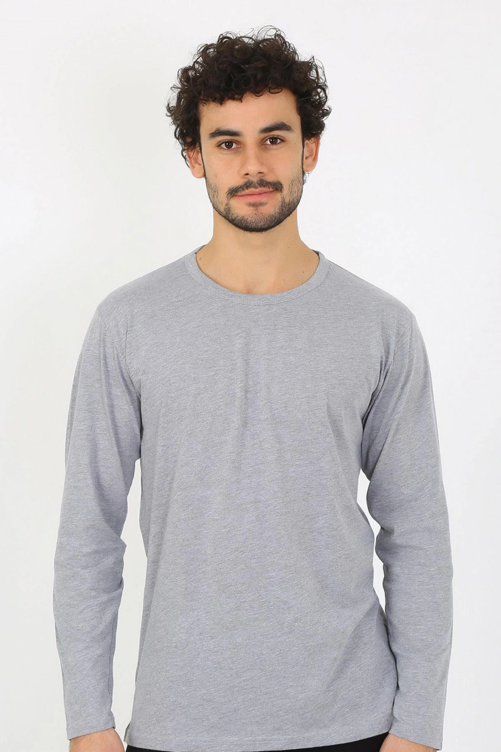 Moda Çizgi Erkek Sıfır Yaka Uzun Kol Gri Fanila 6590