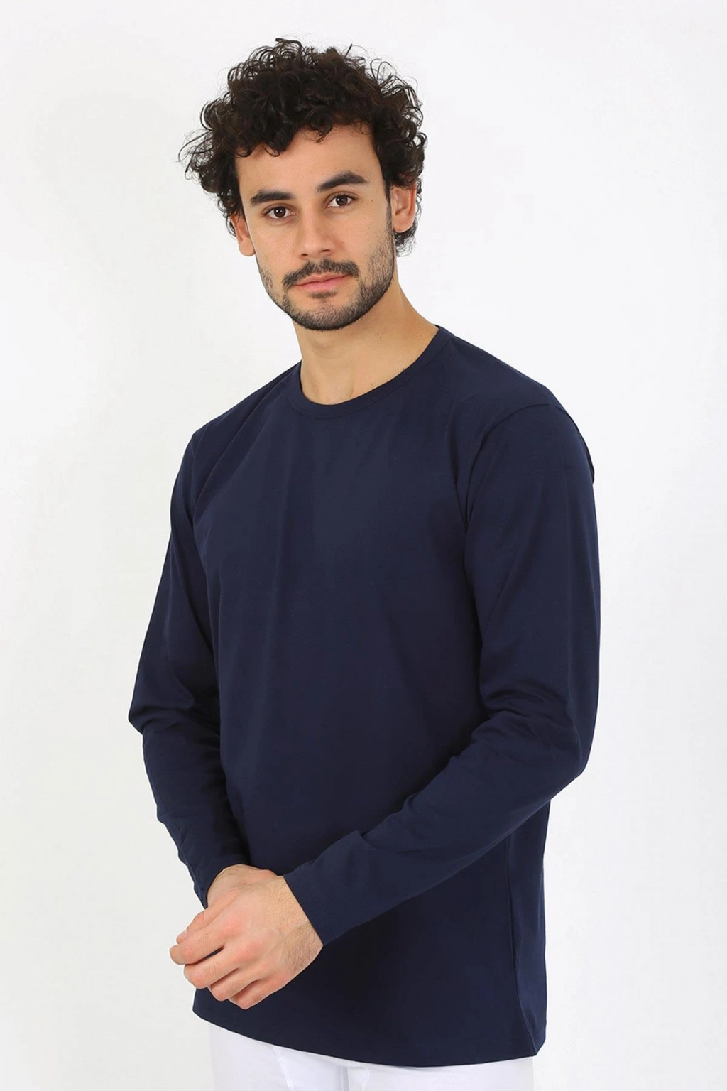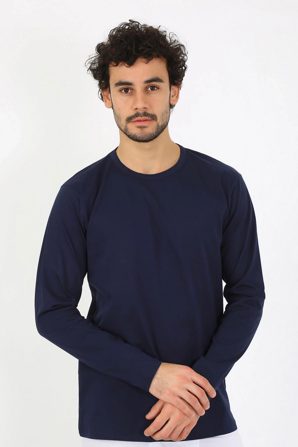 Moda Çizgi Erkek Sıfır Yaka Uzun Kol Lacivert Fanila 6590