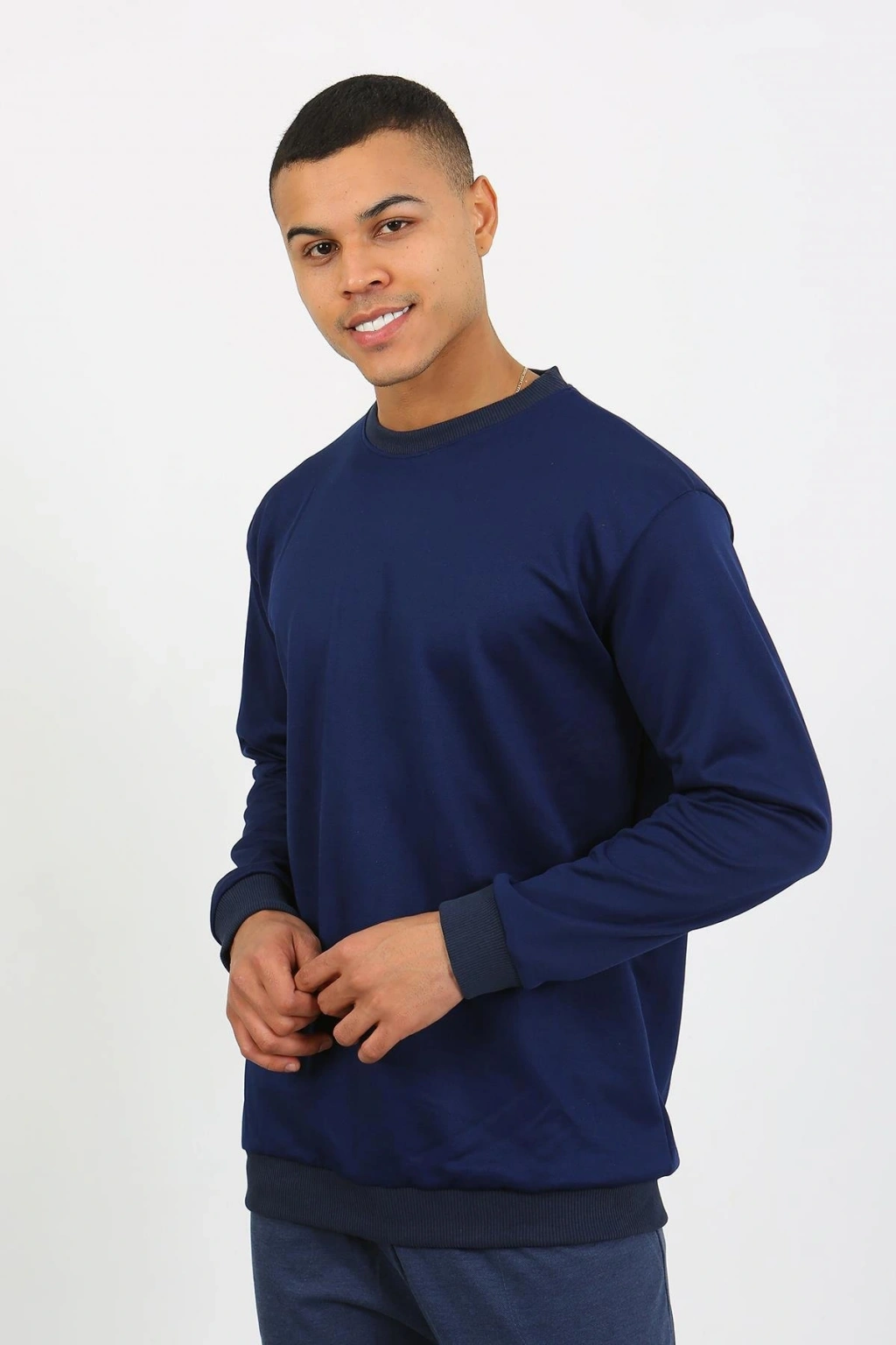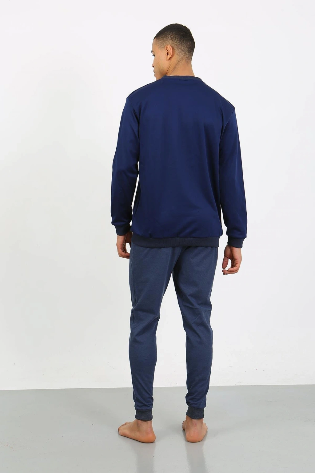 Moda Çizgi Erkek Uzun Kol Manşetli Paça Penye Pijama Takımı 6870 Lacivert