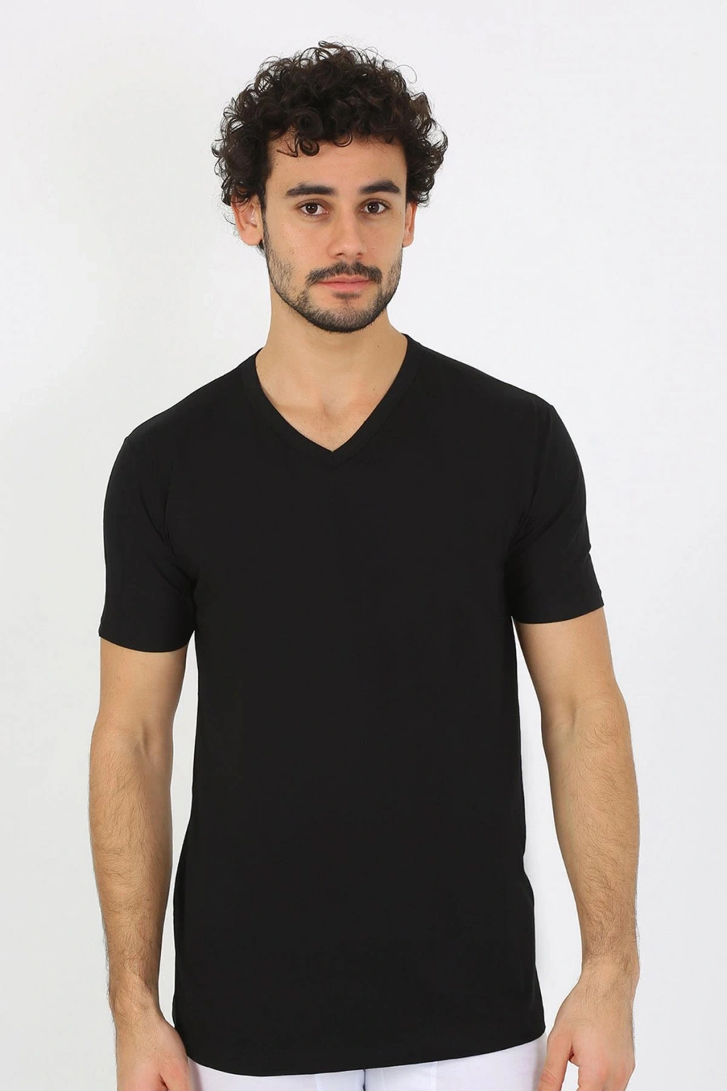 Moda Çizgi Erkek V Yaka Siyah Penye Atlet 6560
