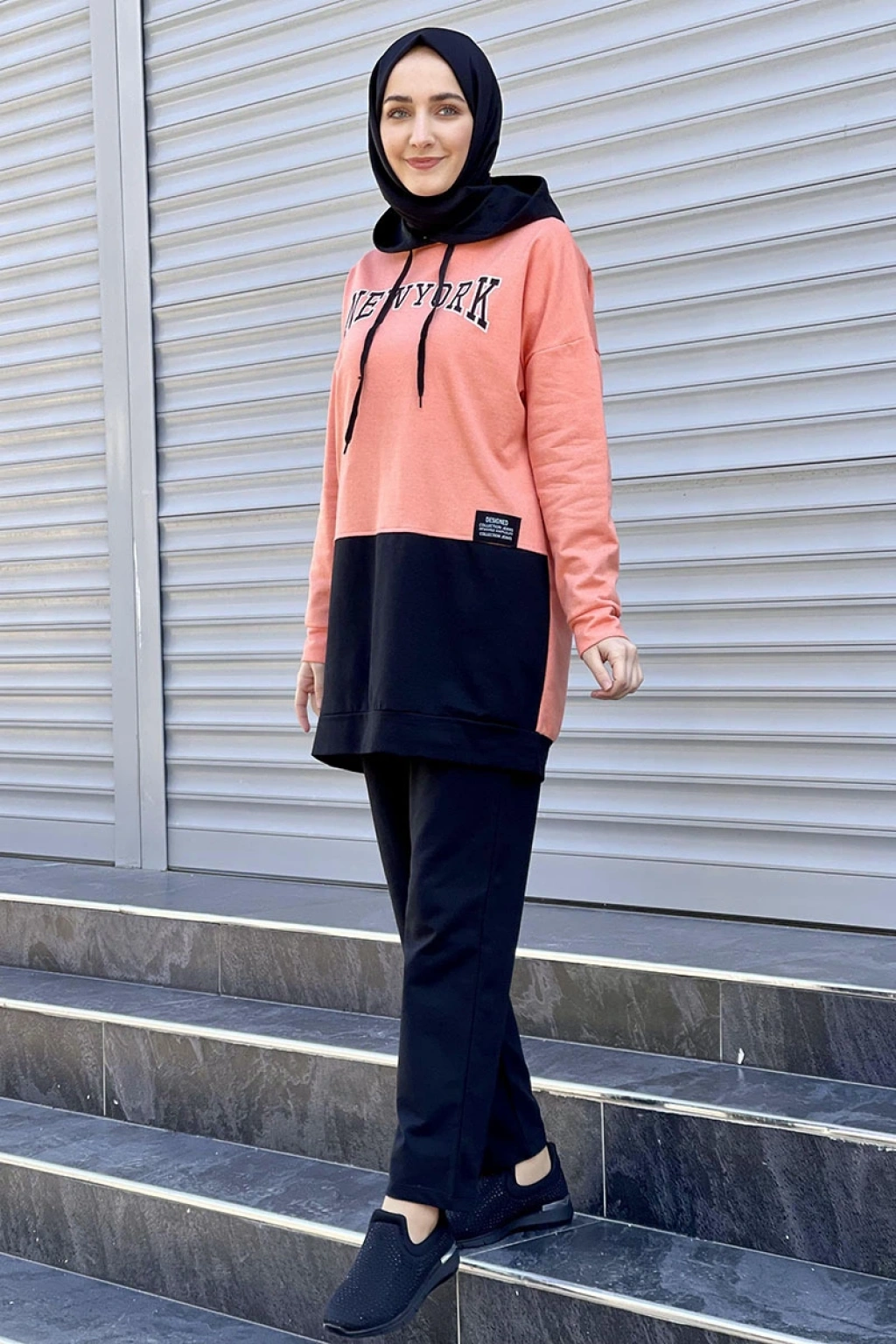 Kapşonlu Baskılı Takım Somon