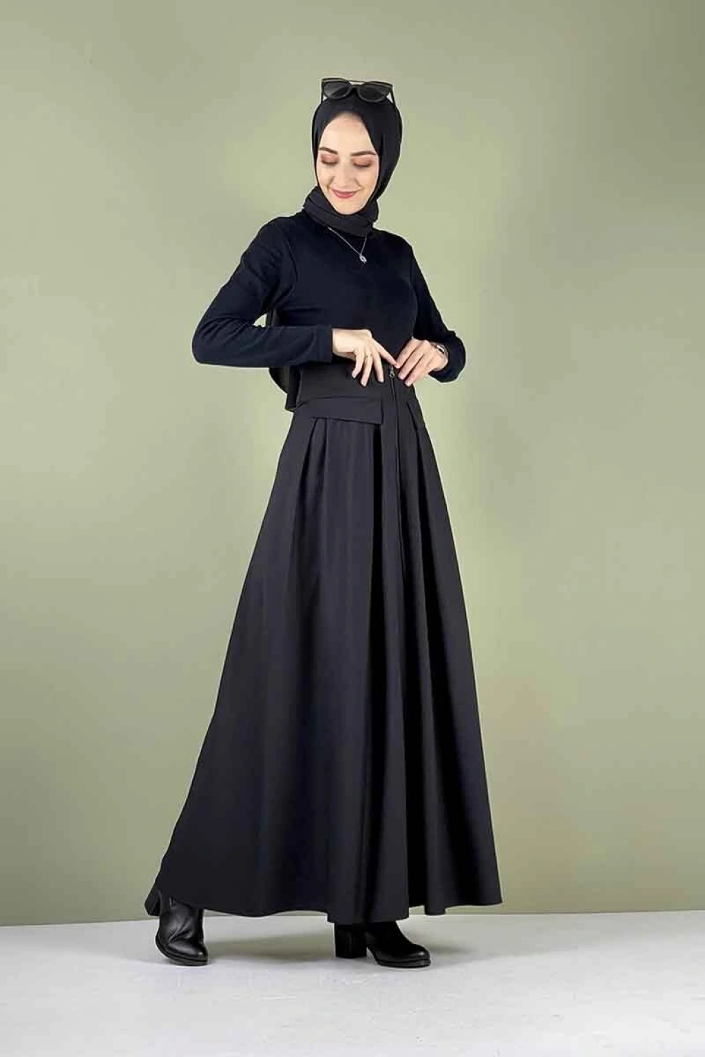 Önü Fermuarlı Etek Siyah