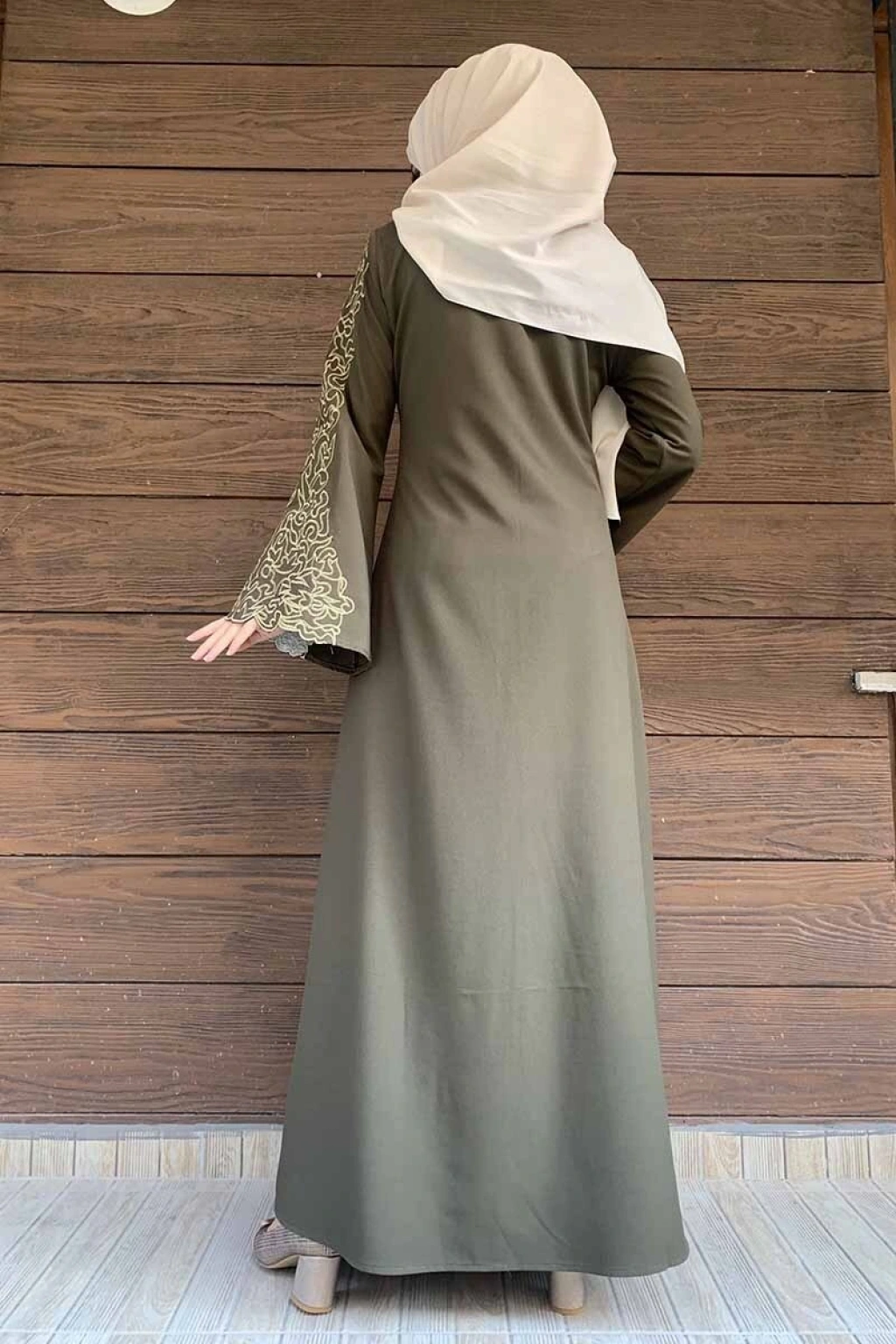 Nakış Detaylı ferace modelimizde Haki renk kumaş tercih edilmiştir. Ürünümüz sıfır yaka astarsızdır. Modelimiz uzun koludur 4 mevsim kullanıma uygundur. Likralı kumaş tercih edilmiştir. Büyük beden seçenekleri mevcuttur.