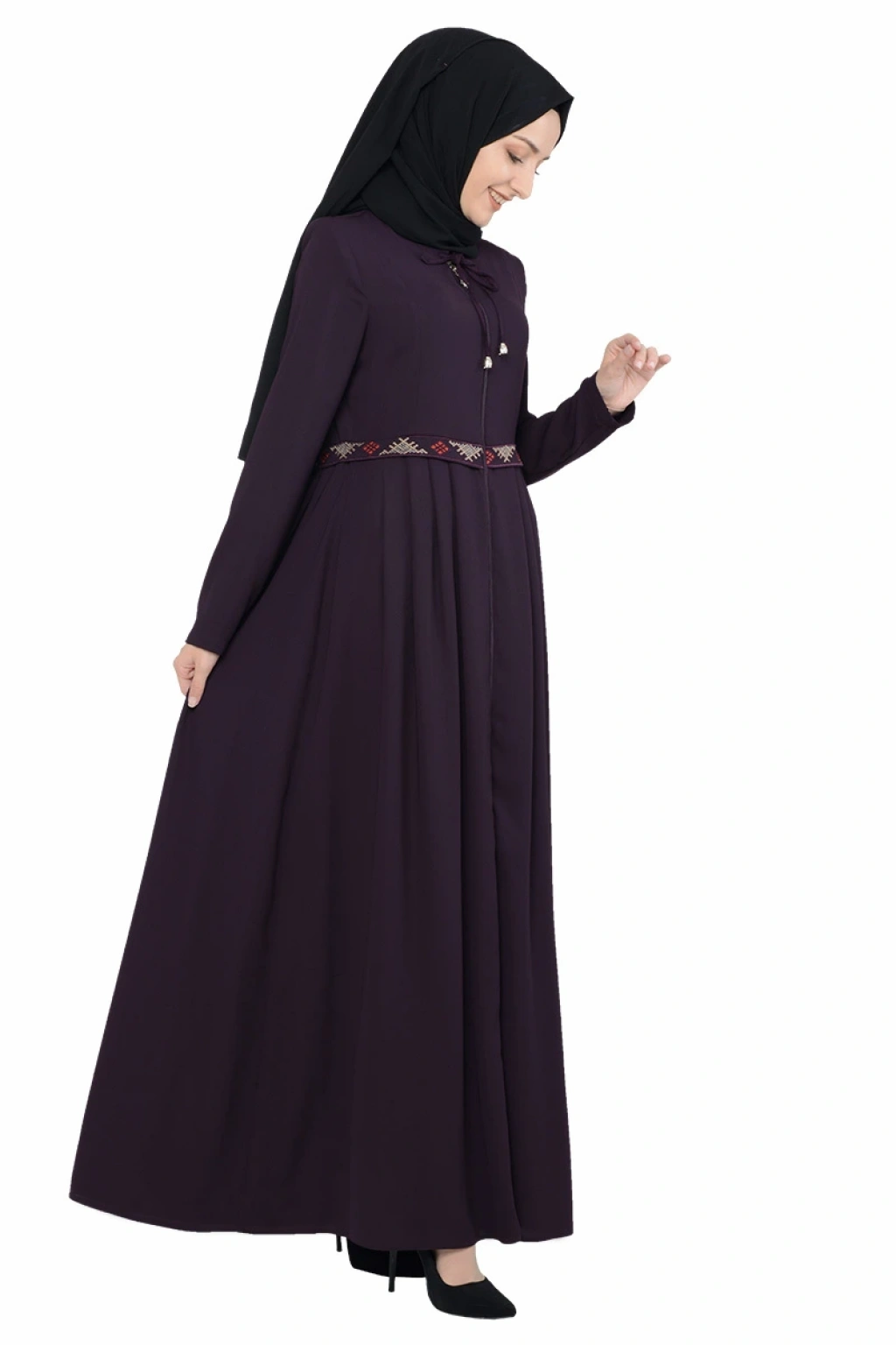 Nakış Detaylı Pileli Ferace Mor