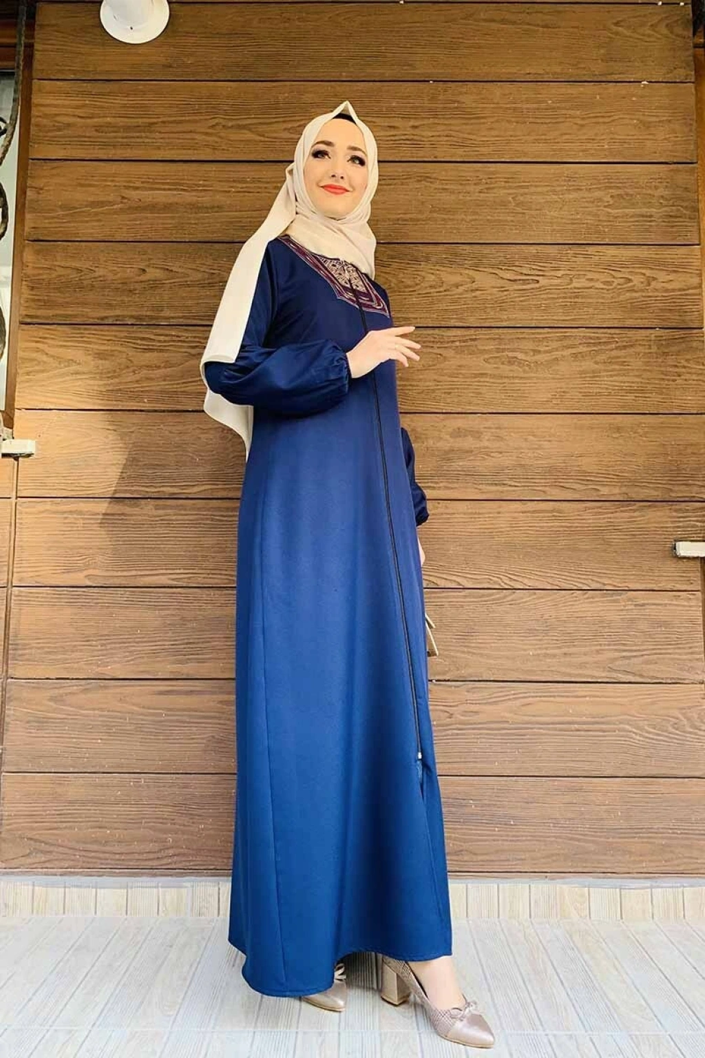 Fermuarlı  Nakışlı ferace modelimizde Lacivert renk kumaş tercih edilmiştir. Ürünümüz sıfır yaka astarsızdır.