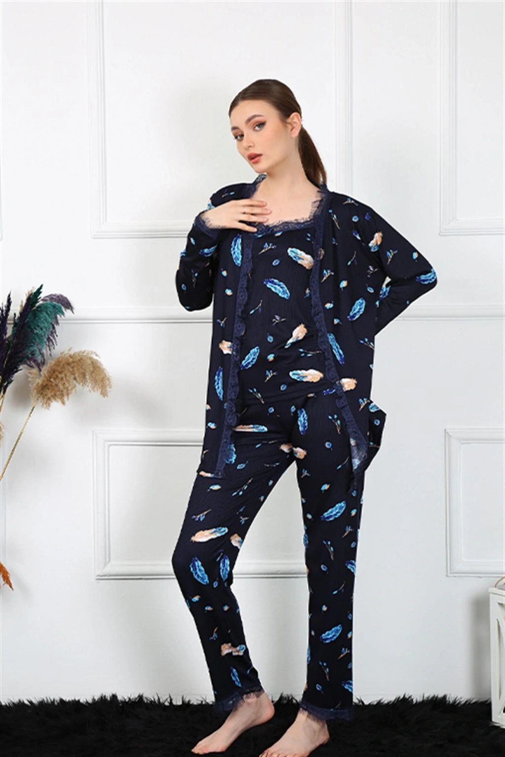 Moda Çizgi Kadın 3'lü Sabahlık Pijama Takım
