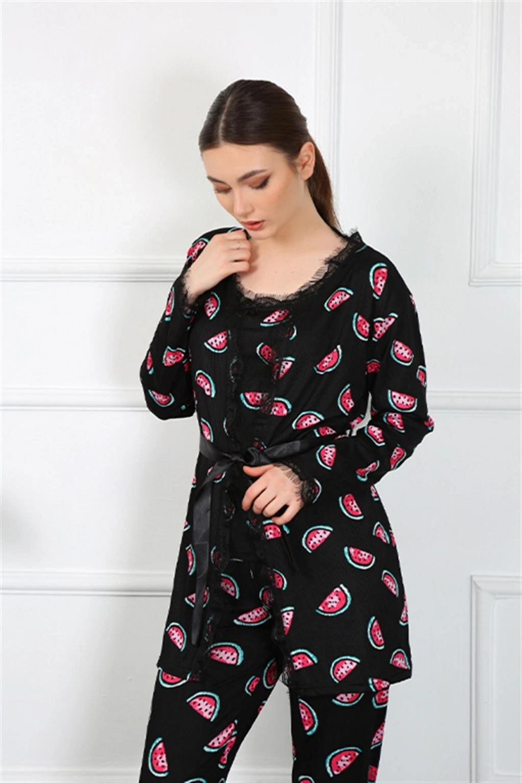 Moda Çizgi Kadın 3'lü Sabahlık Pijama Takım